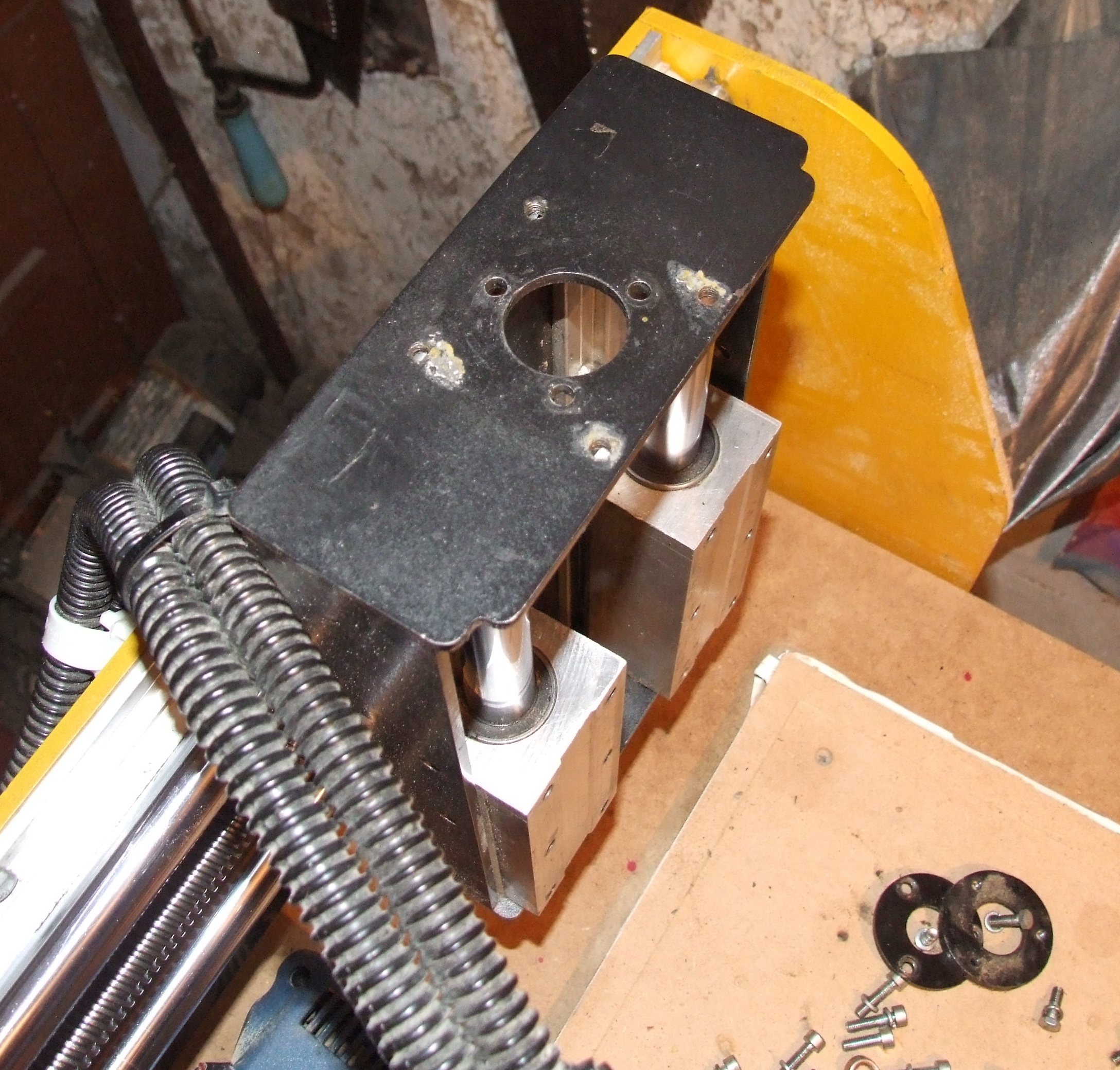 Но кое что прояснилось: По оси Z ситуация как в теме (http://www.cnc-club.ru/forum/viewtopic. ... 91#p285391) ось ходовой резьбы смещена от оси подшипников из-за крепления гайки. Крепление сварное как и у Дрюни, только места для такого-же решения крайне мало. Ничего лучше не придумал как отбить прихватки крепления и прихватить в новом месте, благо только одну сторону вторая будет контрить.