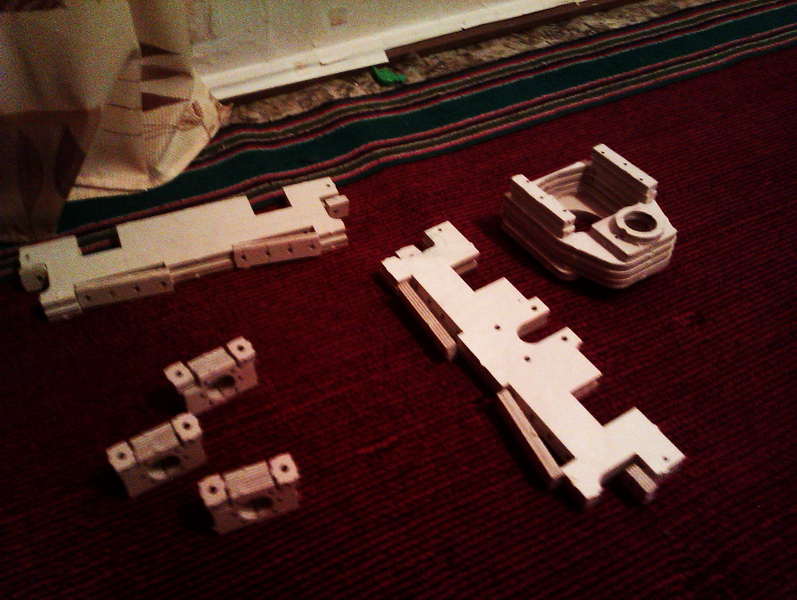 Пока склеивается ось Y, будем клеить основание оси Z с креплениями шпинделя. Крепления шпинделя состоят из двух частей. Они уже были склеены.