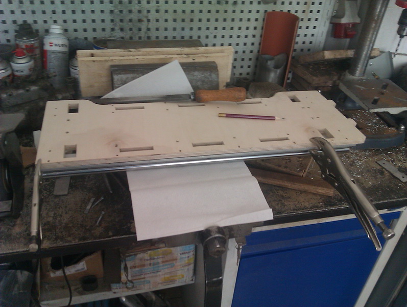 Приступаем к сборке стола. В основании стола присутствуют 4 профиля 40 на 20 длинной 1200 мм. Сказано было делать из алюминия. Но мне легче было найти из нержавейки. Итак для разметки профиля я использовал ту же схему что и при разметки рельс. Длинный острый карандаш, две струбцины(правую не ругать-делал как мог и из чего мог) керно(пожертвовал сверлом-токарь позже переточил), молоток и шуруповерт со сверлом. Опять же отмечайте на каждой планке крепления балок стола и на каждой балке в каких позициях они были при примерке. Проще потом при сборке они то вроде и одинаковы, но все равно друг к дружке тянутся.
