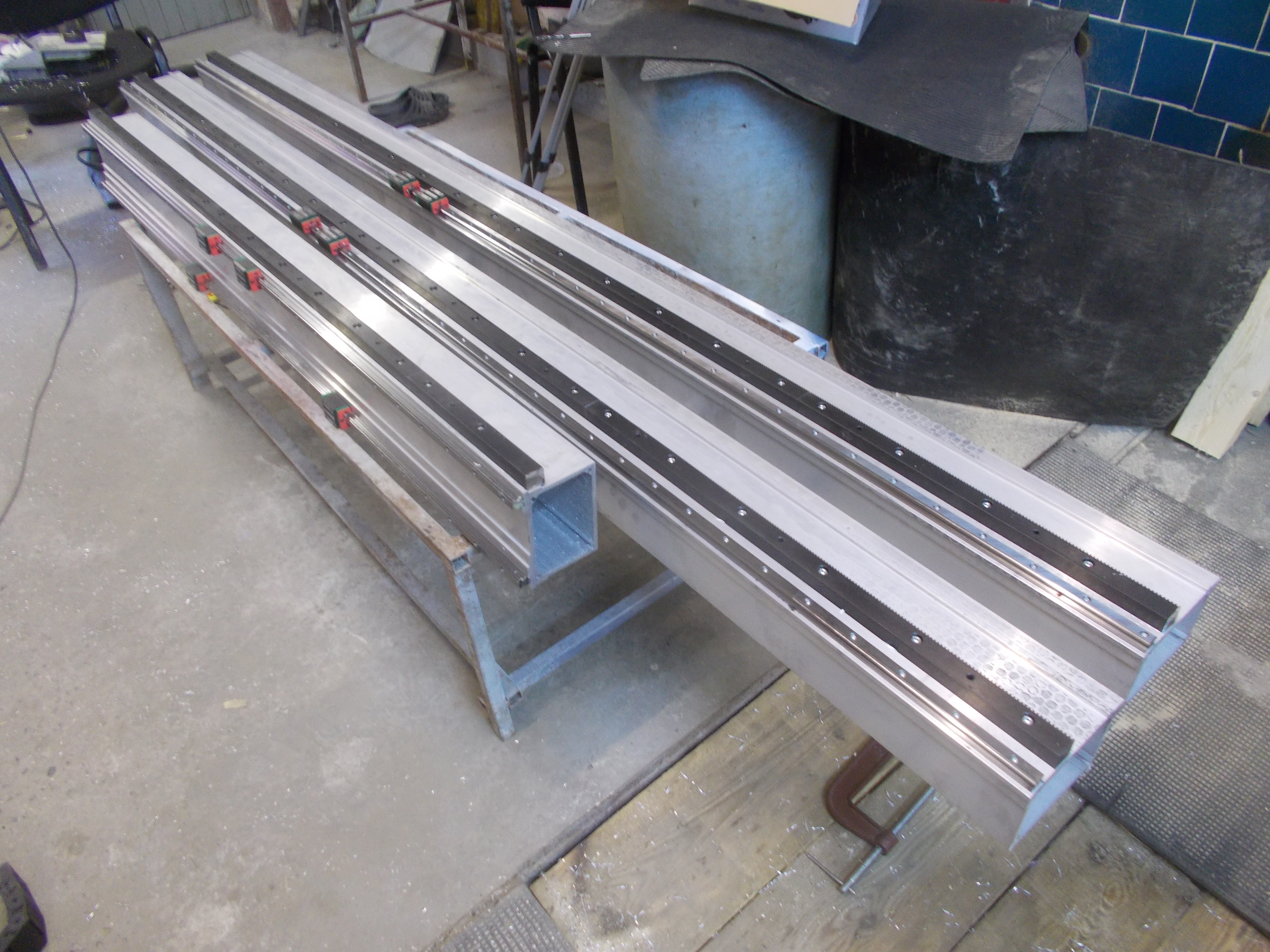 Станок на стадии проектирования. Он будет полностью спроектирован когда придут готовые редуктора и рейки. Так что пока я жду комплектуху и арендовал под стройку ещё один гараж. Вчера привёз вот таких вот балок: две длинные пойдут вдоль станины и одна на портальную балку. Модель станка пока не выкладываю так как сильно "сырая"