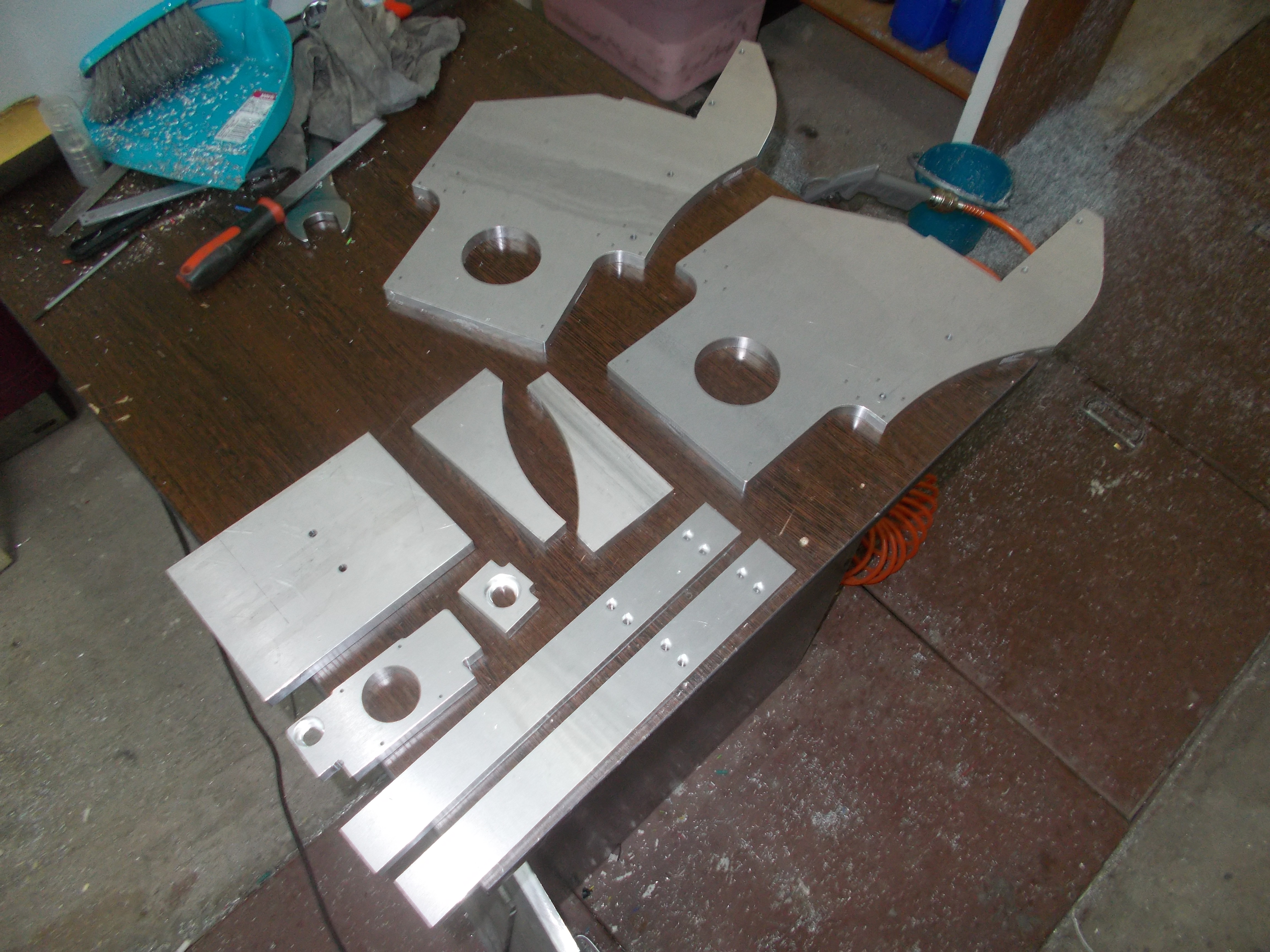 подготовленные к сборке поперечины начало сборки рамы. винты крепления поперечин пока что не затягивал, так как будет проверяться лёгкость хода портала, когда пойму что ходит легко - затяну