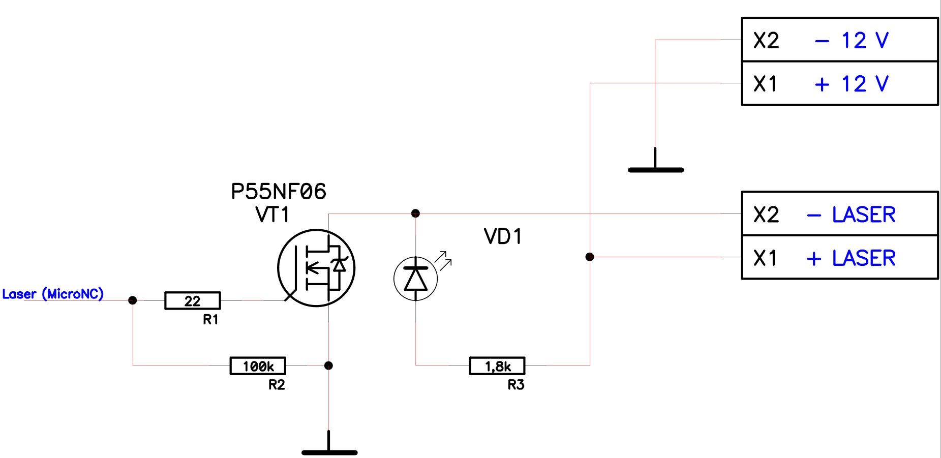 Viktor3018 писал(а):Поэтому мой предварительный пока еще никем не проверенный на практике вариант подключения платы управления лазером по каналу управления (канал питания, как на картинке по ссылке выше) :