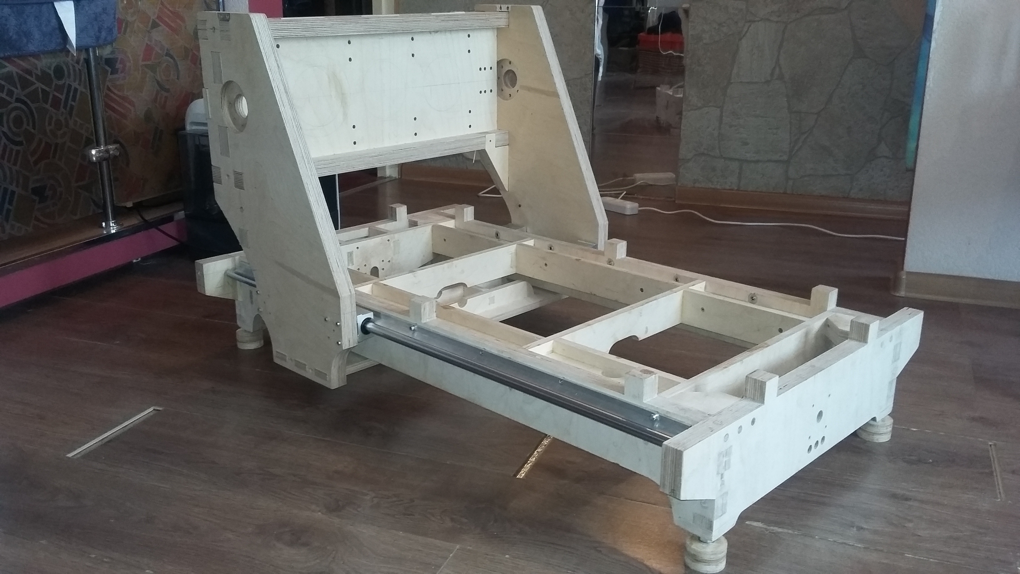 Тоже делал фанерный http://www.cnc-club.ru/forum/viewtopic. ... 1&start=20 типа Вашего. Сейчас хочу увеличить поле до 770х1300, хотел 770х1550- пол-листа фанеры, но купить швп и направляйки больше 1500 оказалось проблемно в Китае. И ШВП по всем осям хочу 1610, а была трапеция 14х4. Ну и по Y 2 винта будет. Останется фанерным. Потом поворотку сделаю туда. Но после него если буду делать, то железный на серво-шаговых движках и направляйках типа Хивина.