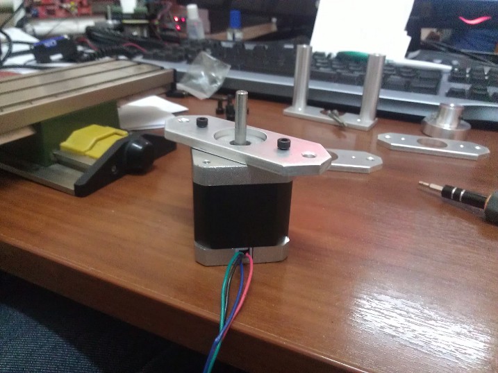 После этого закрепил крепления на моторе: и выяснилось что из 5 купленных в Китае моторов у 2-х погнуты оси немного, и видны вмятины, но слава богу что я перестраховался и взял с запасом, в первом прототипе самодельного крепления это не сильно мешало, т.к. конструкция была из жести, и прогибалась, то тут все очень точно выполнено, и косые оси не подходят.