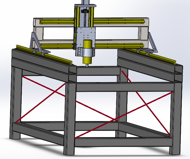 Портал высокий делать не хорошо , и по сему если захочется потом четвертую ось использовать , то при обработке больших диаметров ( основание стола или козья ножка )сильно захочется сделать съемной серединку стола . Следовательно балки по центру не надо делать , а по краям надо .