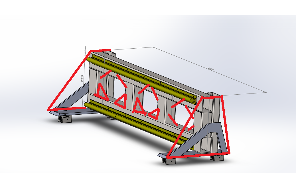 Нарисовал станину. Станина сварная и трубы 80х80х3 . Под рельсы две трубы 80х80х5 и прикручиваться будут болтами чтобы можно было регулировать положение. Достаточно ли прочности этой конструкции ?
