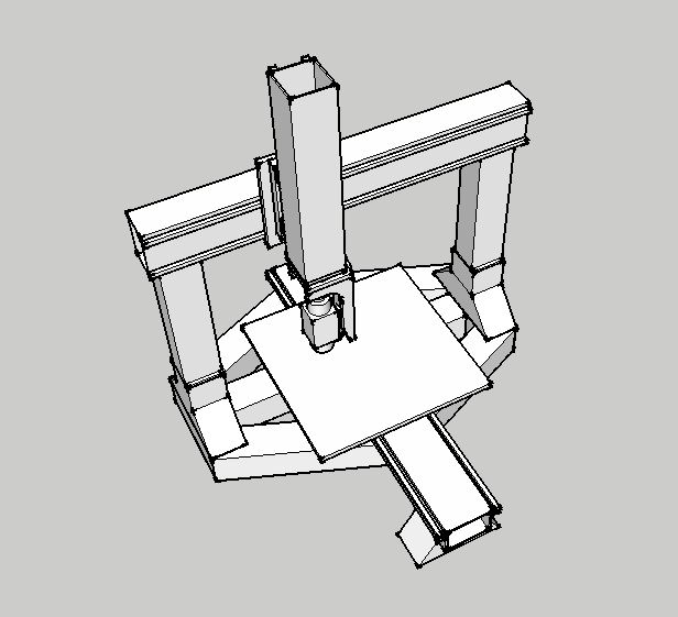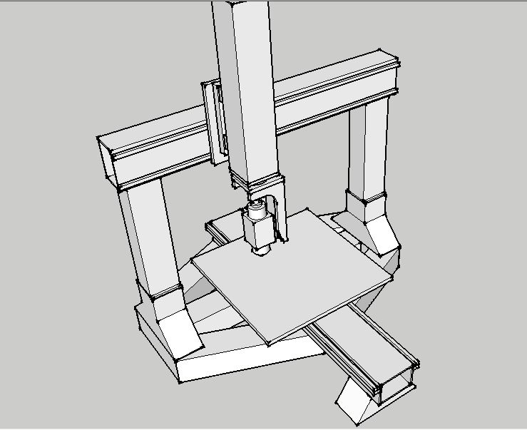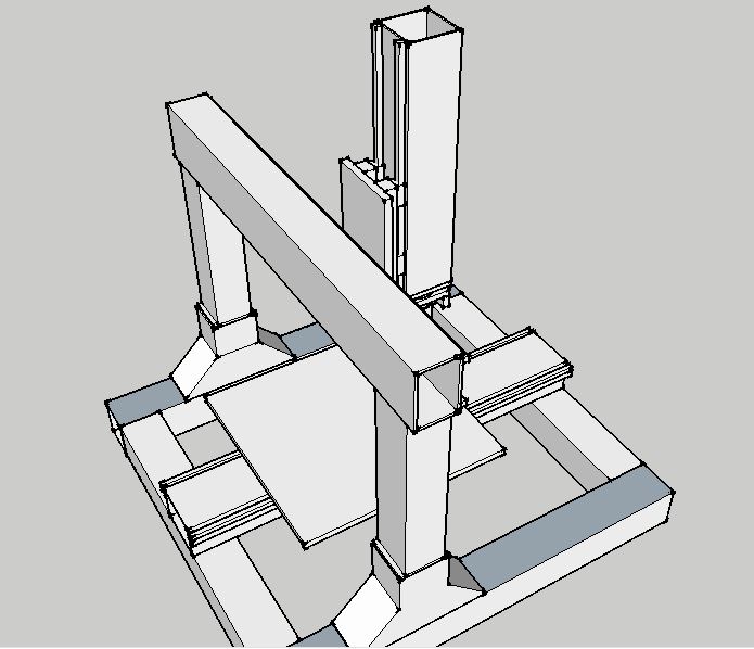 Думал на счет этого варианта, но он более трудоемкий в исполнении, к тому же общая жесткость страдает, а так сварил на ровной плоскости квадрат, прикрутил к нему центральную балку, прикрутил стойки портала и готово, к тому же как мне показалось такая конструкция проще в выравнивании плоскостей, углов, перпендикуляров. Да и общая масса и устойчивость будет на порядок выше.michael-yurov писал(а):А нафига вся эта квадратная рама внизу?