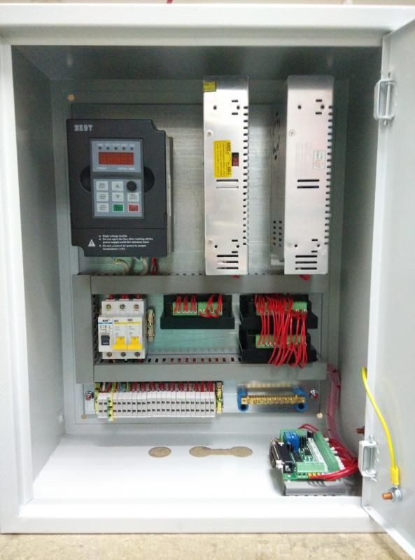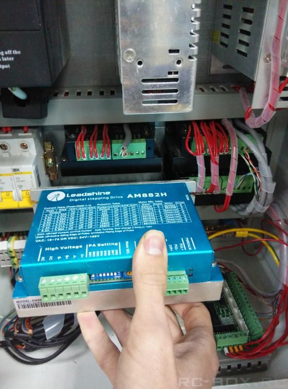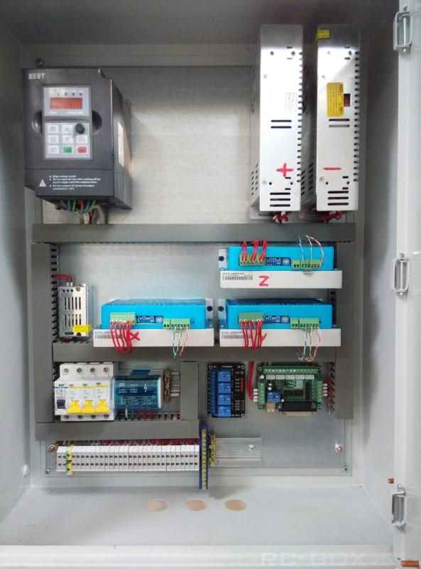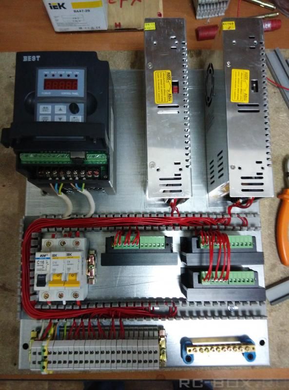 В процессе выяснилось что моим ШД мешали не только драйвера, им также хотелось побольше напряжения, поэтому было решено два блока питания соединить последовательно, немного их подкрутить и получить на выходе чуть менее 80В. Рядом с платой коммутации стоят релюшки, зачем? сам не знаю, лежало на полке, поставил, авось решу СОЖ на МДФ лить :mrgreen: