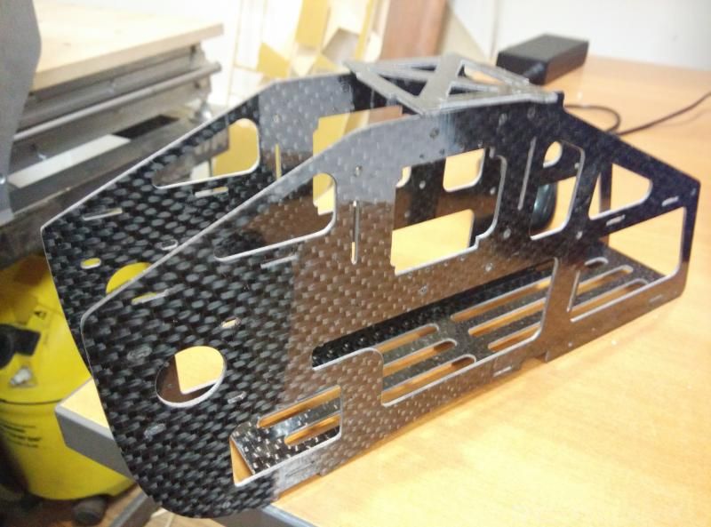 Весь карбон и стойки шасси изготовлены самостоятельно, осталось заменить дюралевые детальки и будет свой вертолет :)