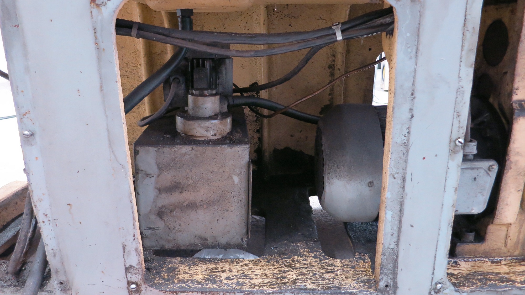 Пока станок стоял на улице, я его продул бензином и воздухом, смыв всю грязищу, что была сверху. Чистоте (по сравнению с тем, что было до мойки) радовался не долго, так как ума снять панели и продуть тумбу изнутри у меня по каким-то причина не хватило :thinking:. Затащив станок в помещение и сняв панели обнаружил авгиевы конюшни :freak:, так что придётся повторять подвиг Геракла. Много раз пытался сфотографировать то, что твориться внутри, но фотоаппарат по какой-то причине не может передать происходящее во всей красе. На этой фотографии под двигателем можно увидеть толщину слоя :