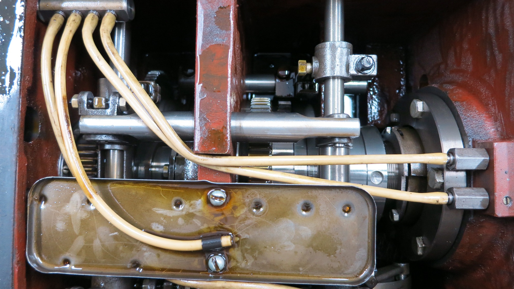Заодно обнаружилось и отсутсвие присуствия помпы СОЖ :(. На фото видна станция смазки. Похоже, что она не от этого станка :? , так как в руководстве по эксплуатации на схеме изображено нечто иное. На моей отсутствуют предохранительный клапан с реле давления, вход/выход это две отдельные детали, есть какие-то кронштейны для крепления, но внутри станины ничего, куда это можно прикрепить, нет.