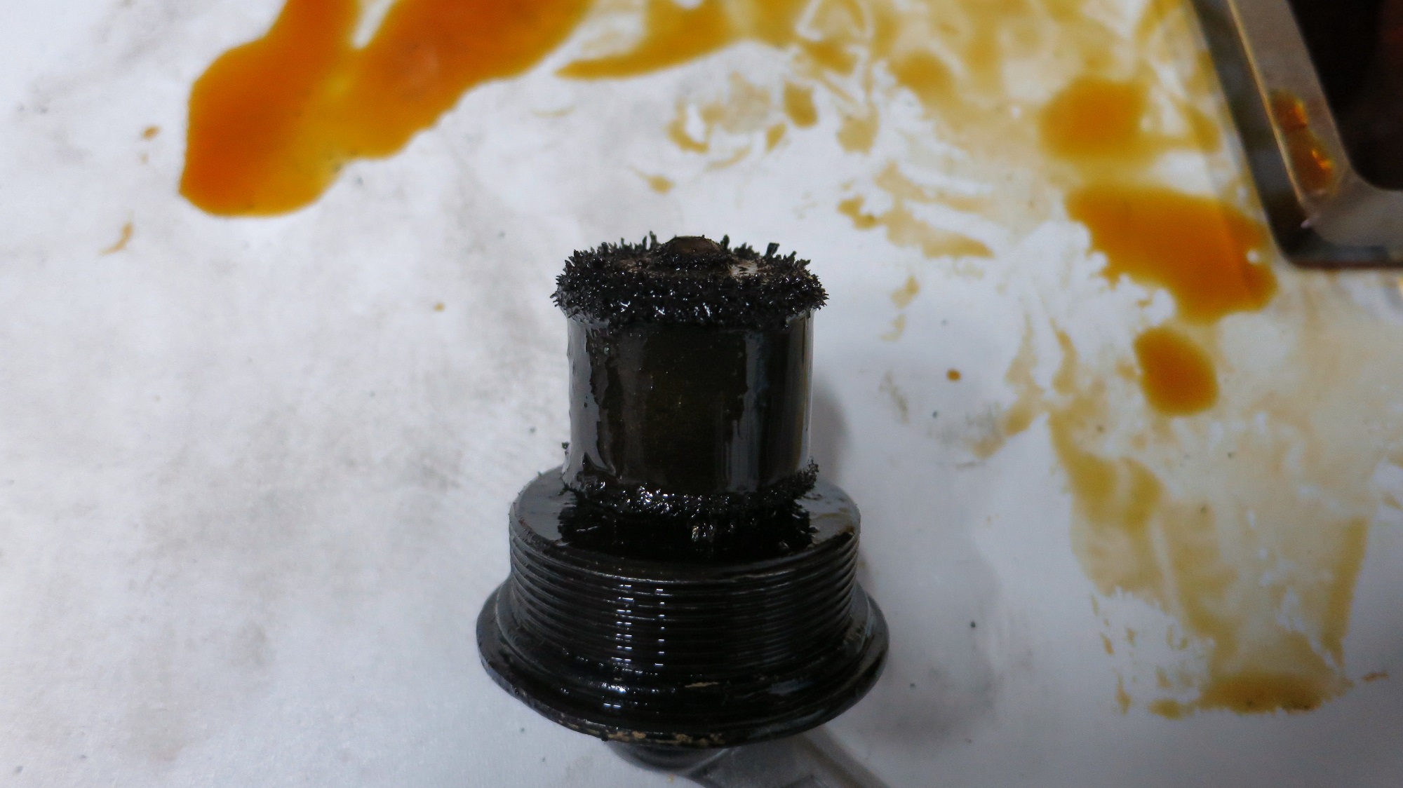 Грязи на дне редуктора совсем чуть-чуть. Магнит на пробке редуктора :