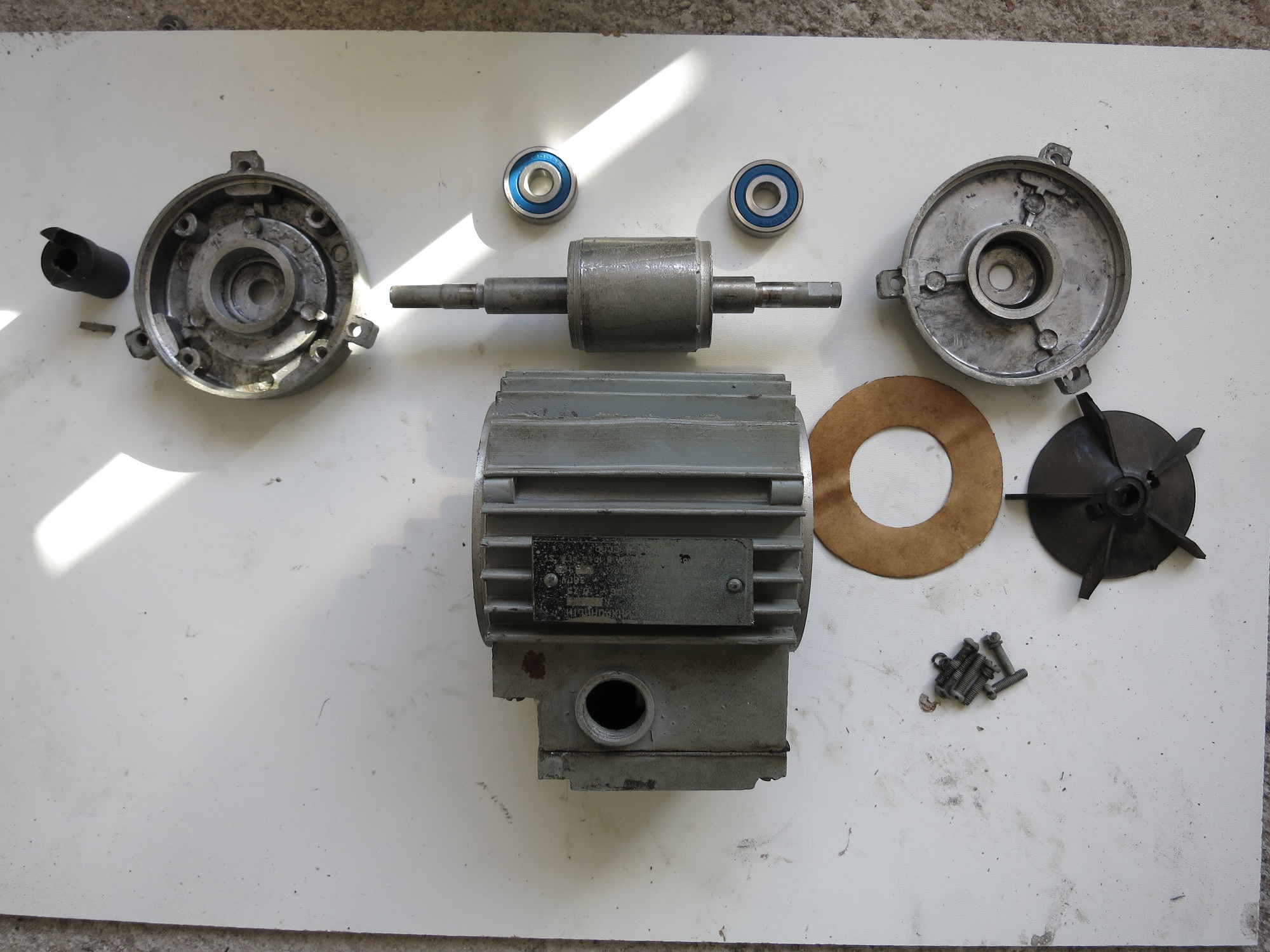 Когда я его разобрал для смены подшипников, из него высыпалась куча осыпавшегося лака и ниток обвязки. на валу были обнаружены капли меди. Было видно, что когда-то двигатель был хорошо перегрет, может быть даже и не один раз. Так что его кончина была лишь вопросом времени. Кроме того, при работе двигателся отчетливо была слышна неравномерность в его работе, не знаю как объяснить. Подумал, что это из-аз подшипников. Но после замены в течении тех 5 секунд, что он проработал, эта неравномерность была слышна.