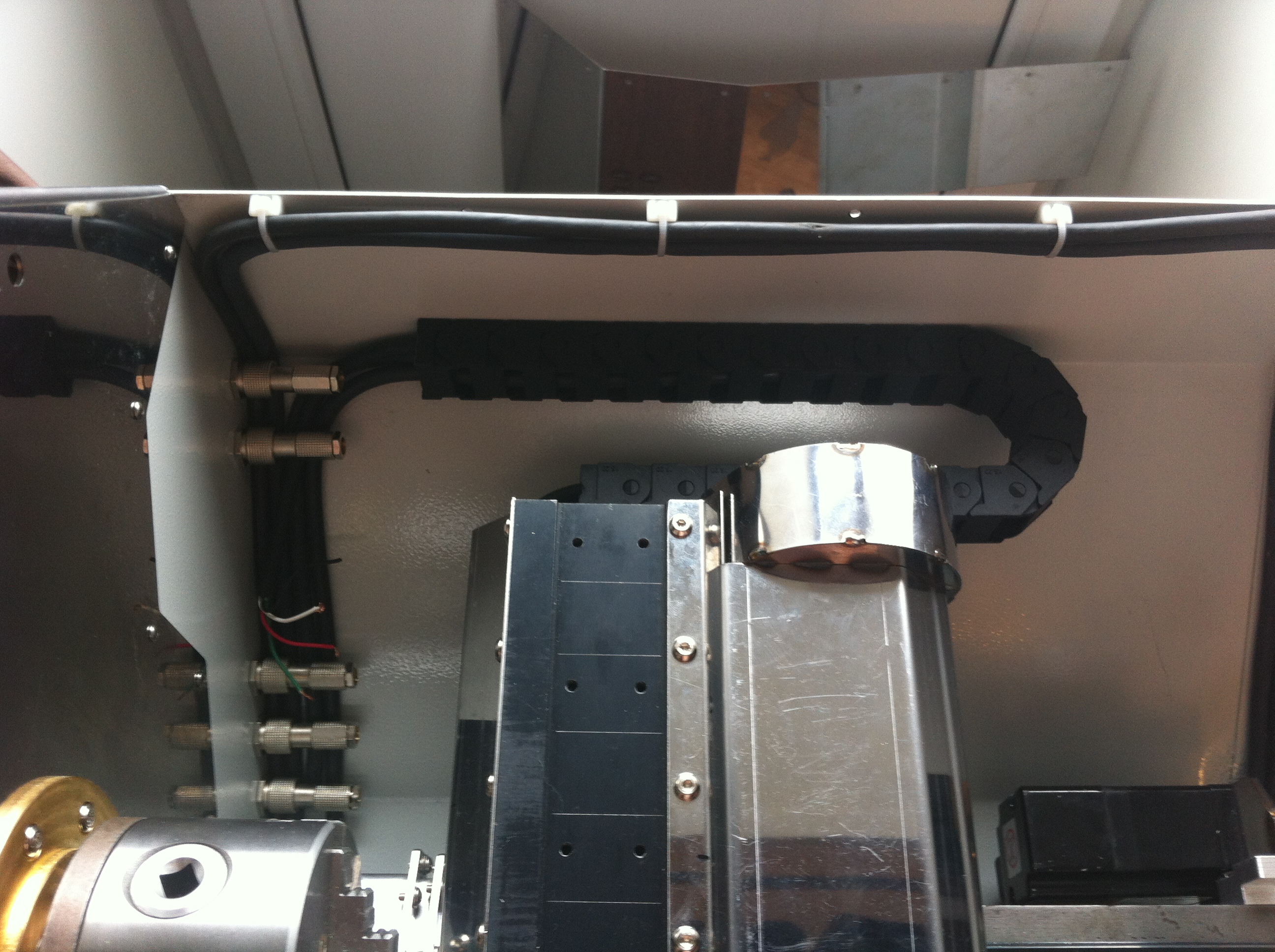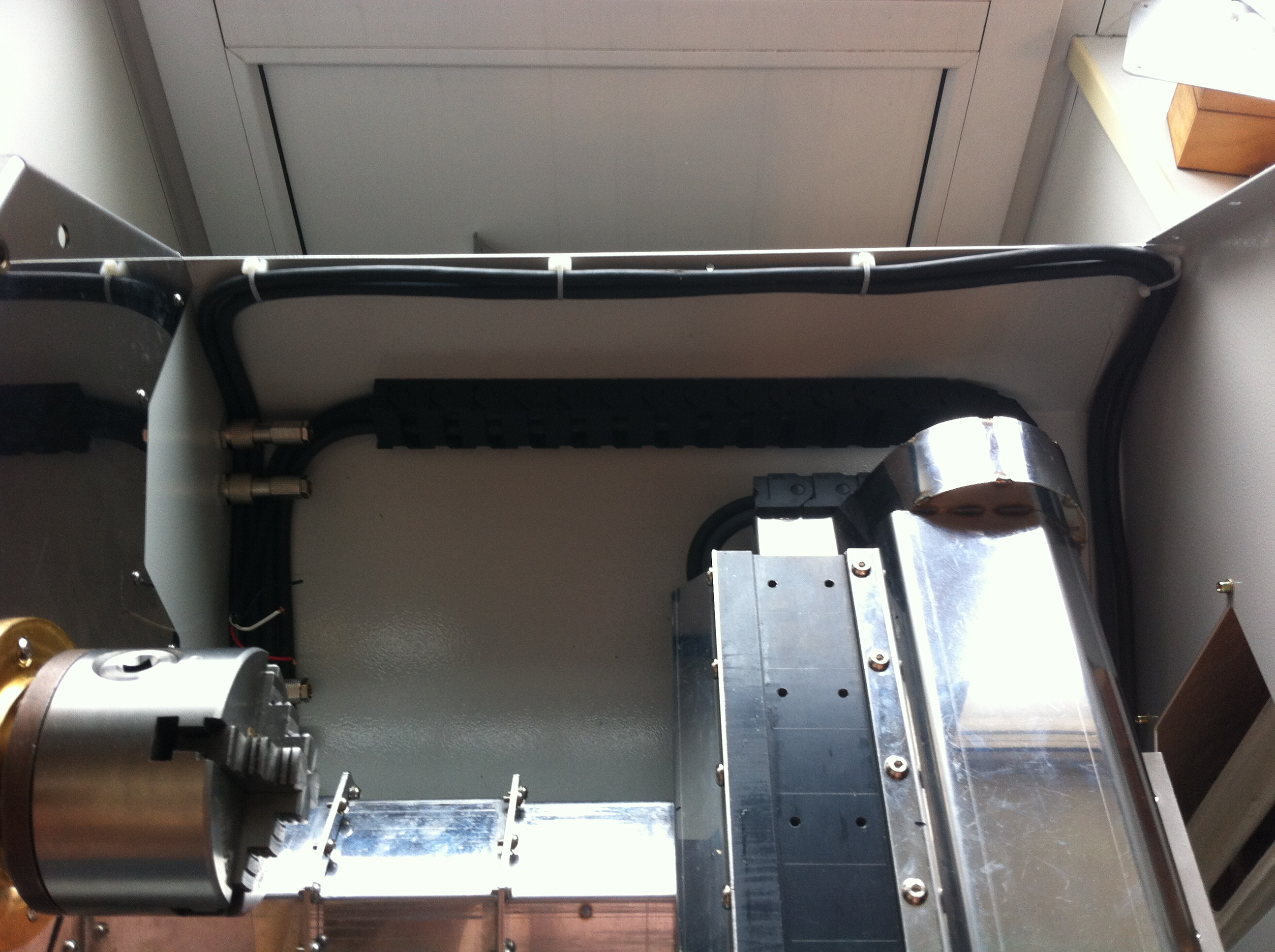 В принципе можно сделать и козырек - фото в крайнем положении - вполне есть место где закрепить козырек и прикрыть как разъемы так и часть кабельного канала, где стружка лететь будет