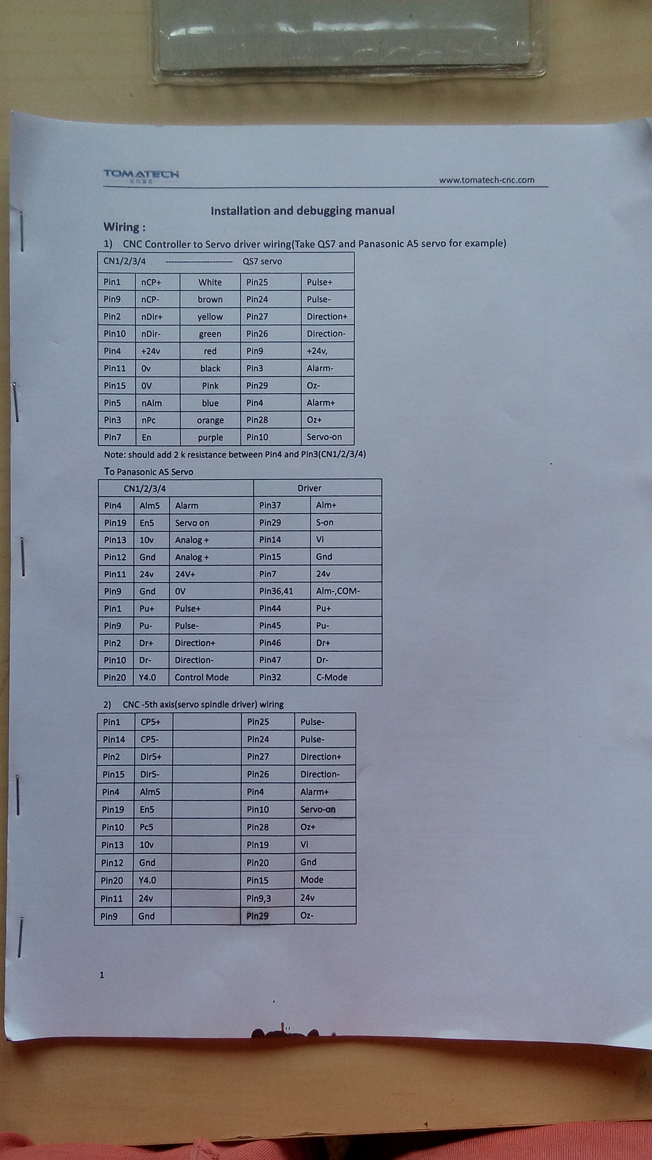 И в бумажках на стойку написано просто такой-то проводок на такой-то вход драйвера Minas A5.
