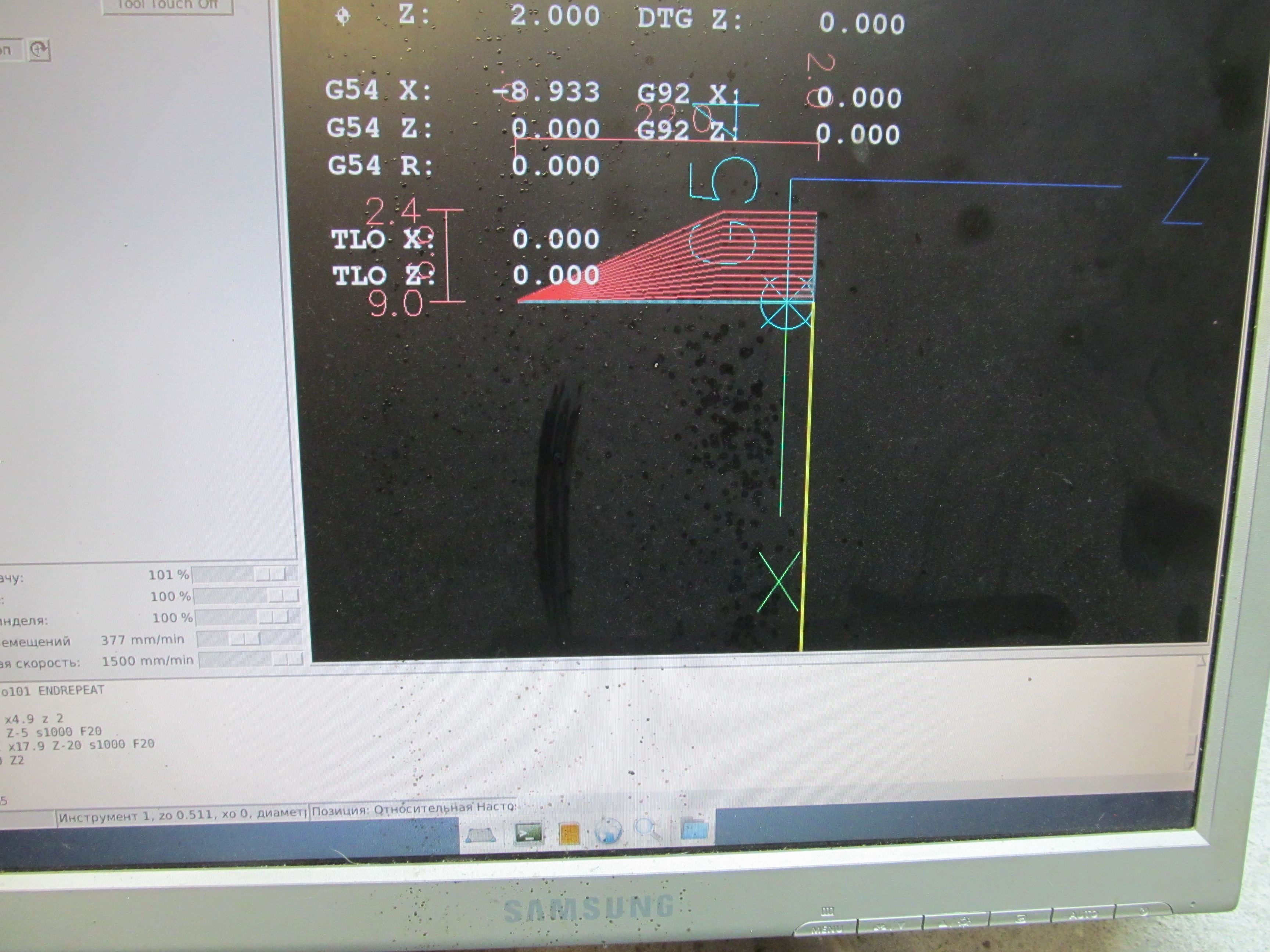 the spindle speed in RPM. CSS will track changes in tool offsets. The X machine origin should be when the reference tool (the