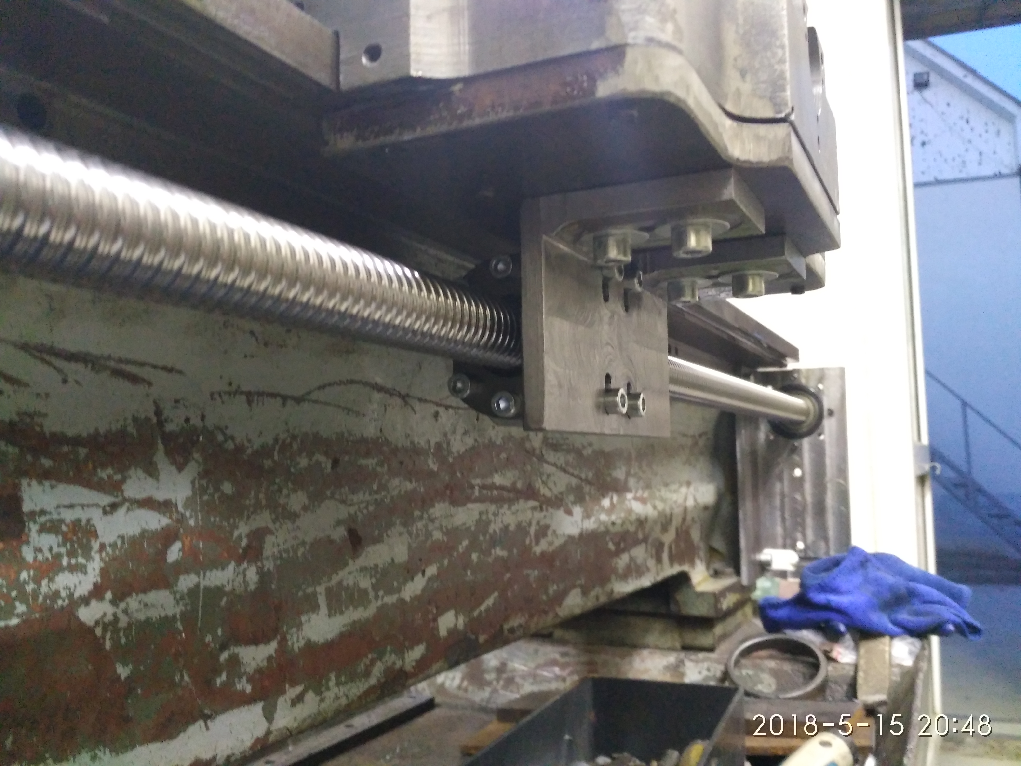 При таком креплении гайки швп получишь немало неприятностей. Сейчас суппорт не толкается гайкой, а разворачивается вокруг вертикальной оси, призмы работают только 2-мя краешками в каждый момент движения, суппорт поднимается вверх пока нижние прижимные планки позволяют, потом едет. Немного спасает только вес суппорта, который сильно упал когда ты снял фартук. С разворотом суппорта сгибается змеёй винт ШВП, крайние шарики оказываются перегружены. Такая система будет иметь растущие мёртвые хода и быстрый износ, нетрудно догадатся какие области призм суппорта будут быстрее стиратся. В такую конструкцию нужен натянутый винт швп в 2-3 раза толще с двойной гайкой даже не ради выборки люфта, а ради дополнительного сопротивления разворачивающему моменту. Или... даже не знаю, рельс на боковине станины чтоли