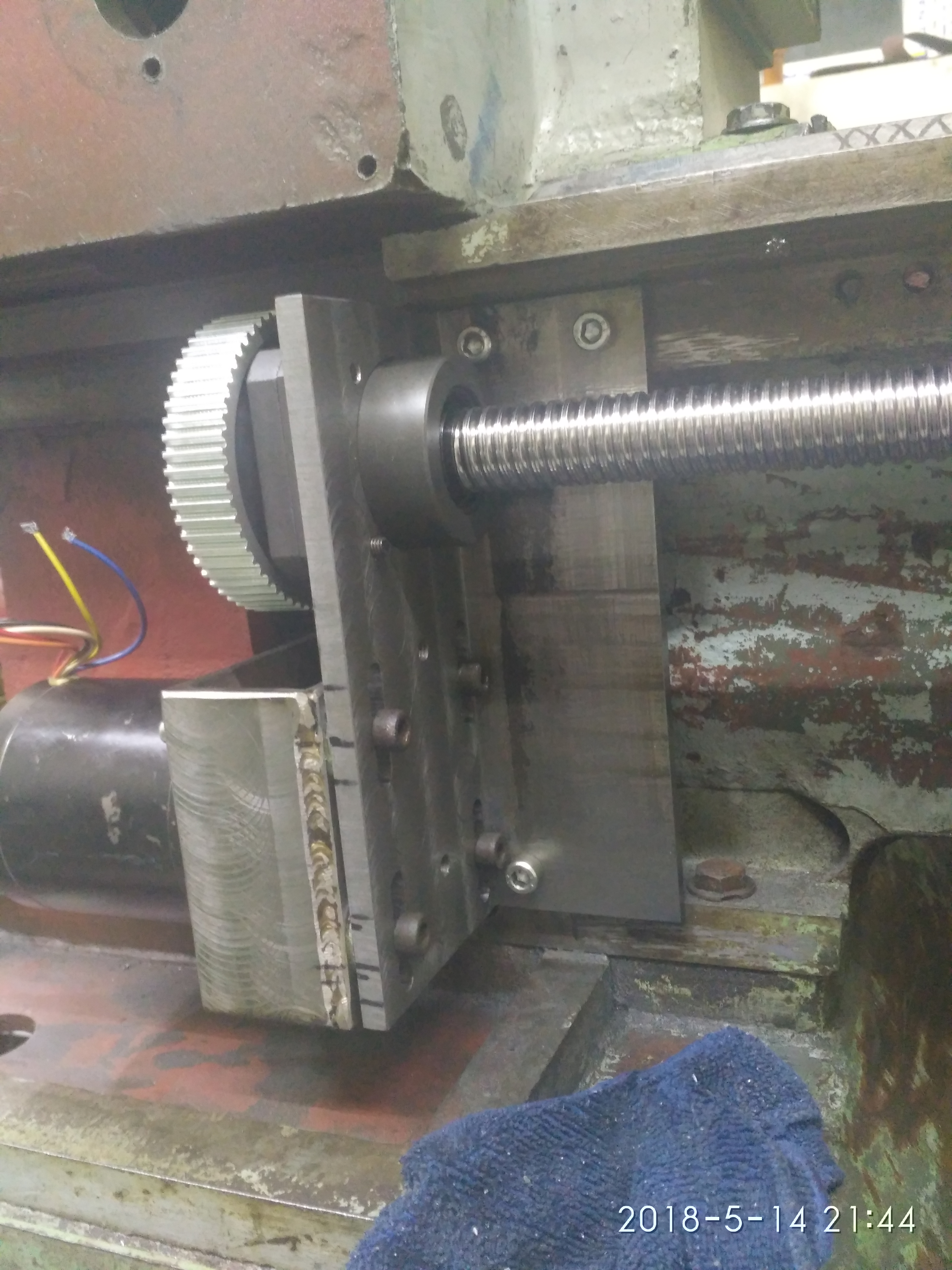 На таком станке (у меня кстати 16М05) лучше всего ШВП пропускать между призмами станины под суппортом, я проверял, места хватает. Тогда суппорт будет реально толкатся чуть ли не в центр масс, разве что резец немного посопротивляется) Единственная дополнительная сложность это переделать прижимы задней бабки, плёвая работа если есть доступ к фрезеровке.