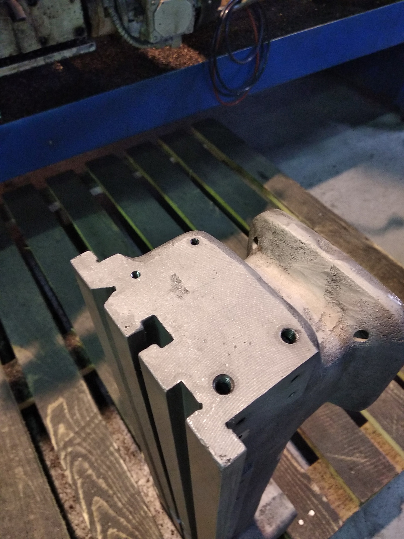 Отпесочил станину, шлифанул, просверлил и нарезал резьбу в торце для крепления двигателя и опоры винта.