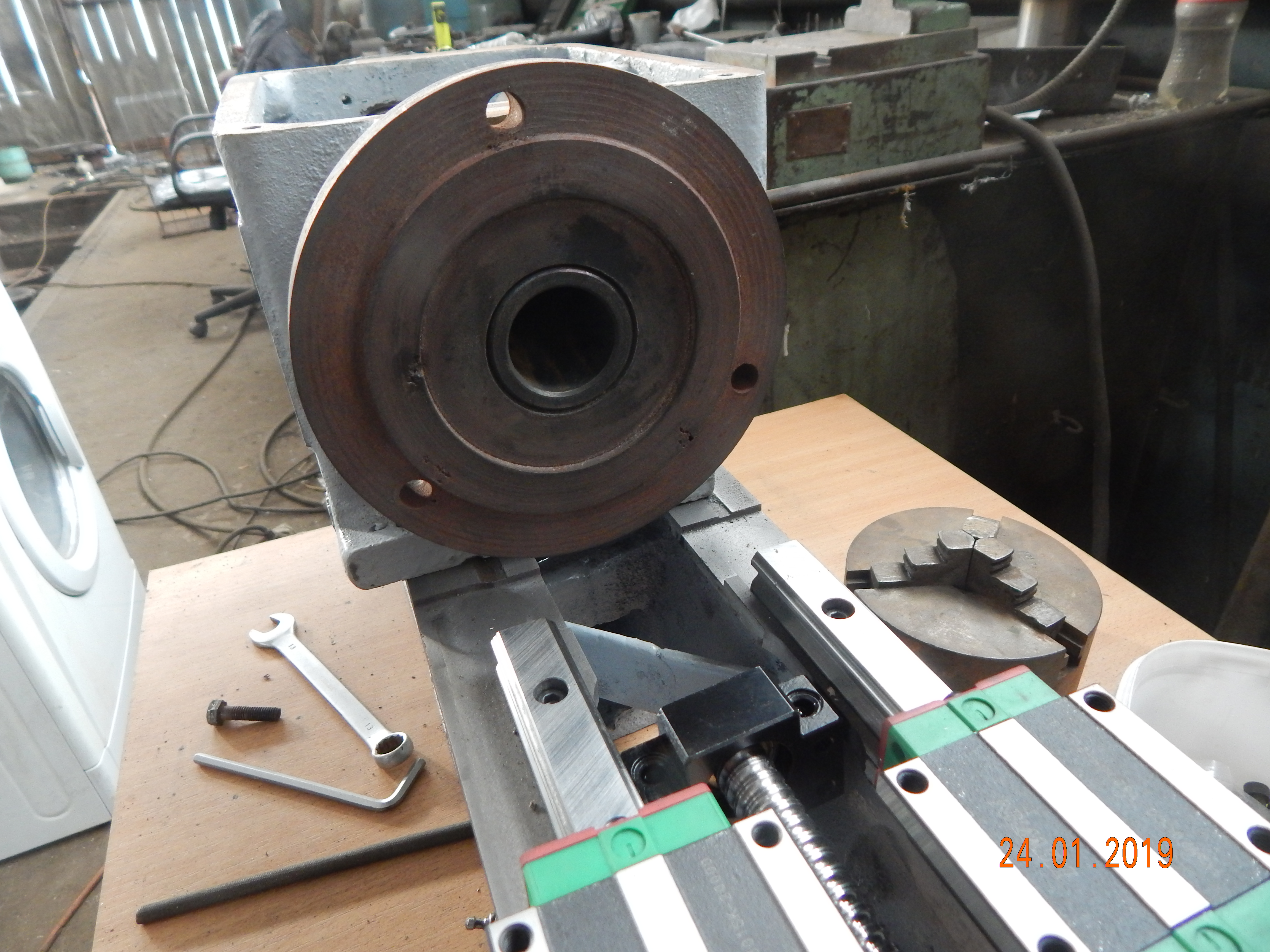 Мне не понравилось, что смещено не в ту сторону, если резец со стороны как обычно на станках, то вылет в воздухе до опор получится огромный. При смещении в другую сторону было бы гораздо приятней. Или там на 3 картинке патрон с коробкой не прикручены и криво просто поставлены сверху на раму?
