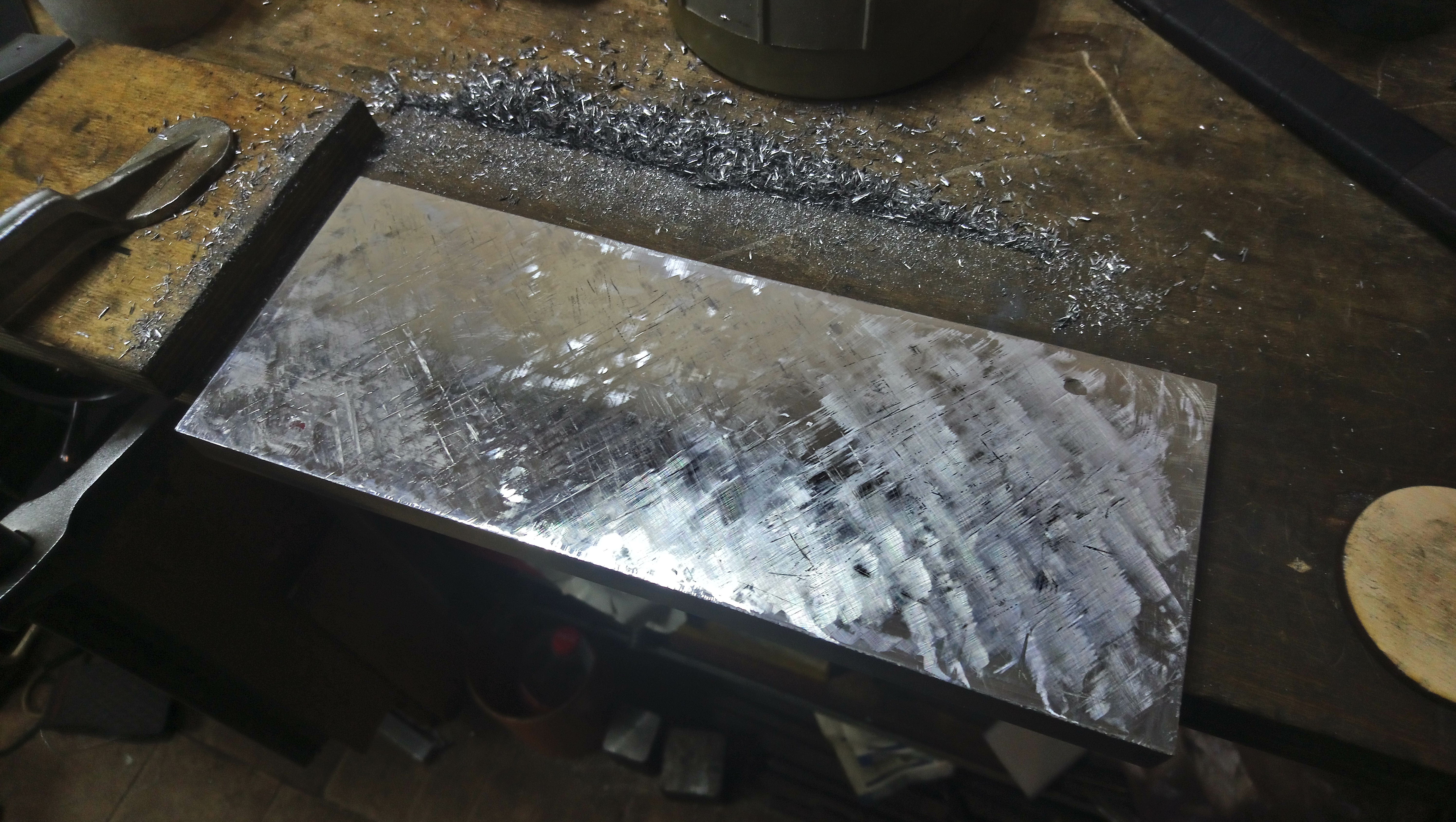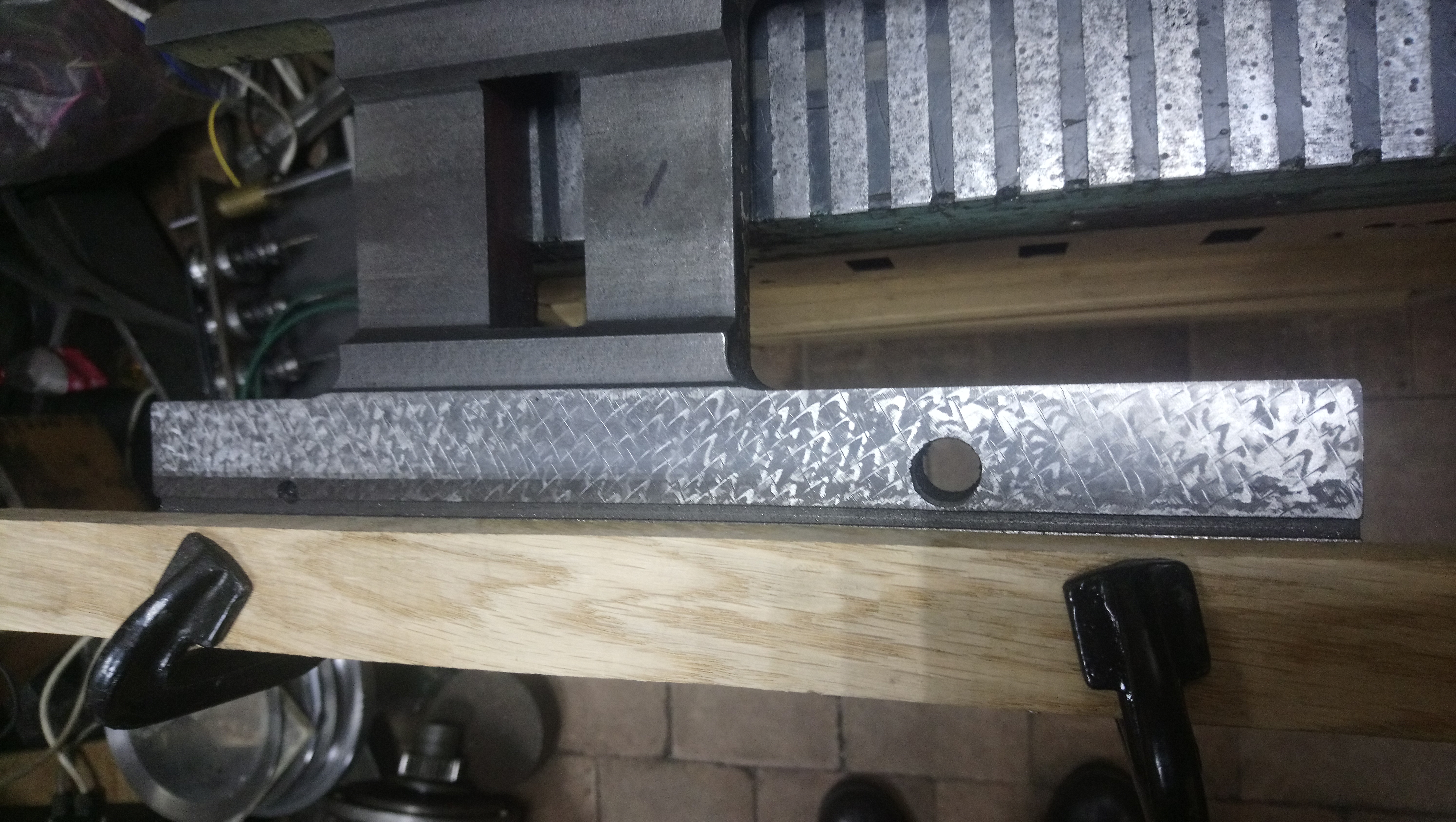 Немного поцарапал направляющие, для красоты конечно же, ведь выработка на станине была всего-то около 6 десяток. По вертикали удалось получить 2 сотки, а по горизонтали сотку, на всю длину станины.