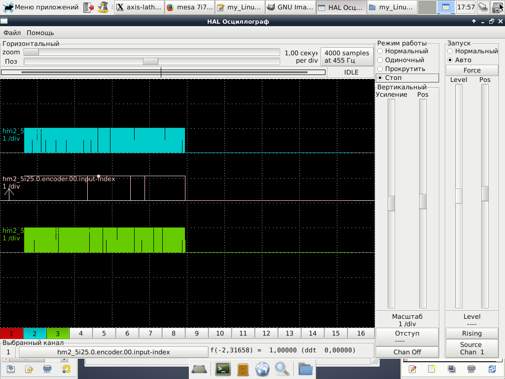 Столкнулся с очередной проблемой - в налскопе индексная метка ведет себя как хочет. Вот скриншот при стабильных оборотах: Подскажите - это оппа энкодеру или я что-то в настройках намудрил?