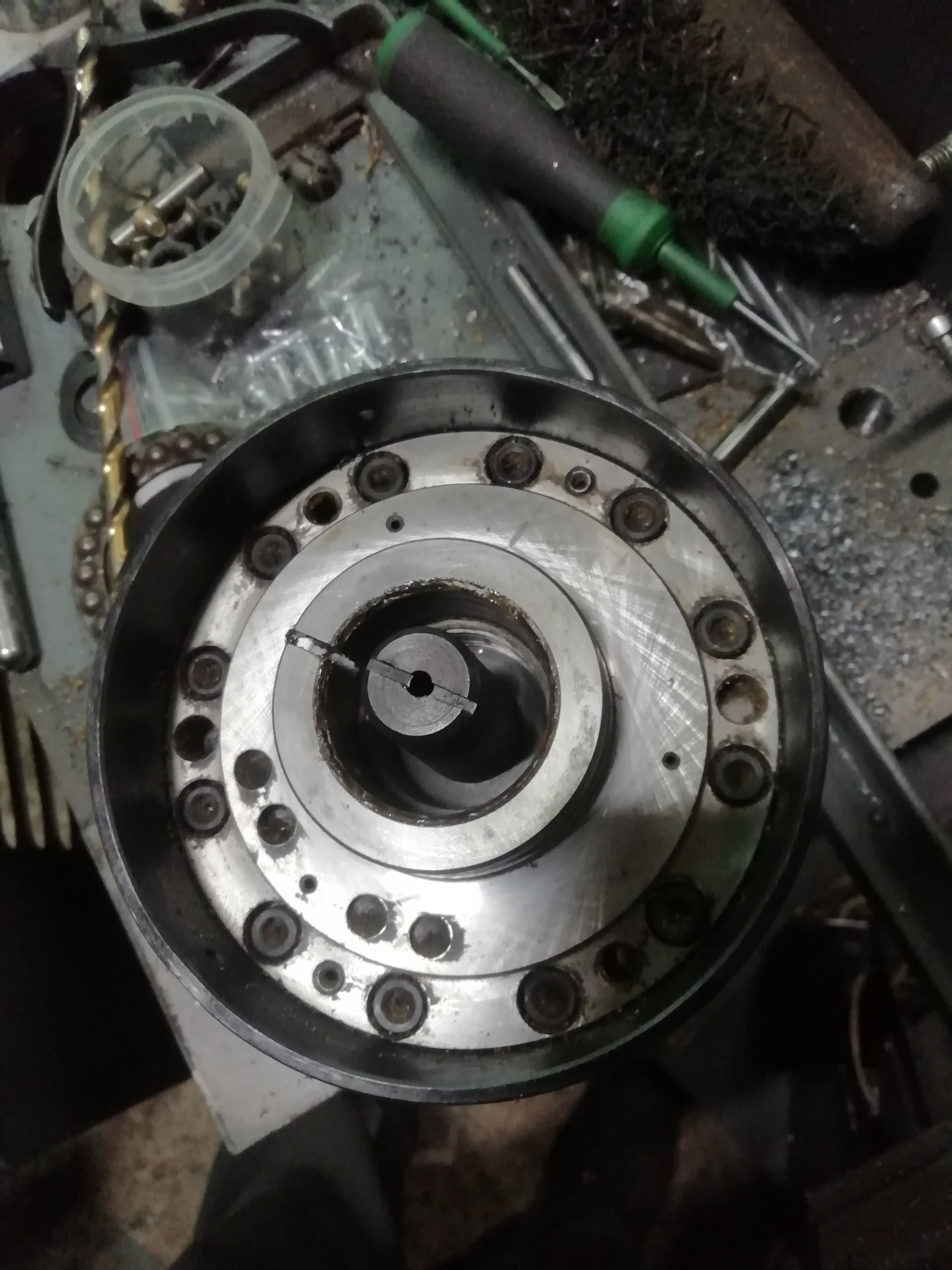 Отмечусь для проформы)) Дела идут, но медленно. Работаем по вечерам над станком и то не каждый день. Помыли весь, установили асинхронник 3квт, энкодер на шпинделя, сделали обе опоры на поперечку и механизм натяга винта. Сейчас занимаемся централизованной смазкой и кожухами ( хотим попробовать сож).