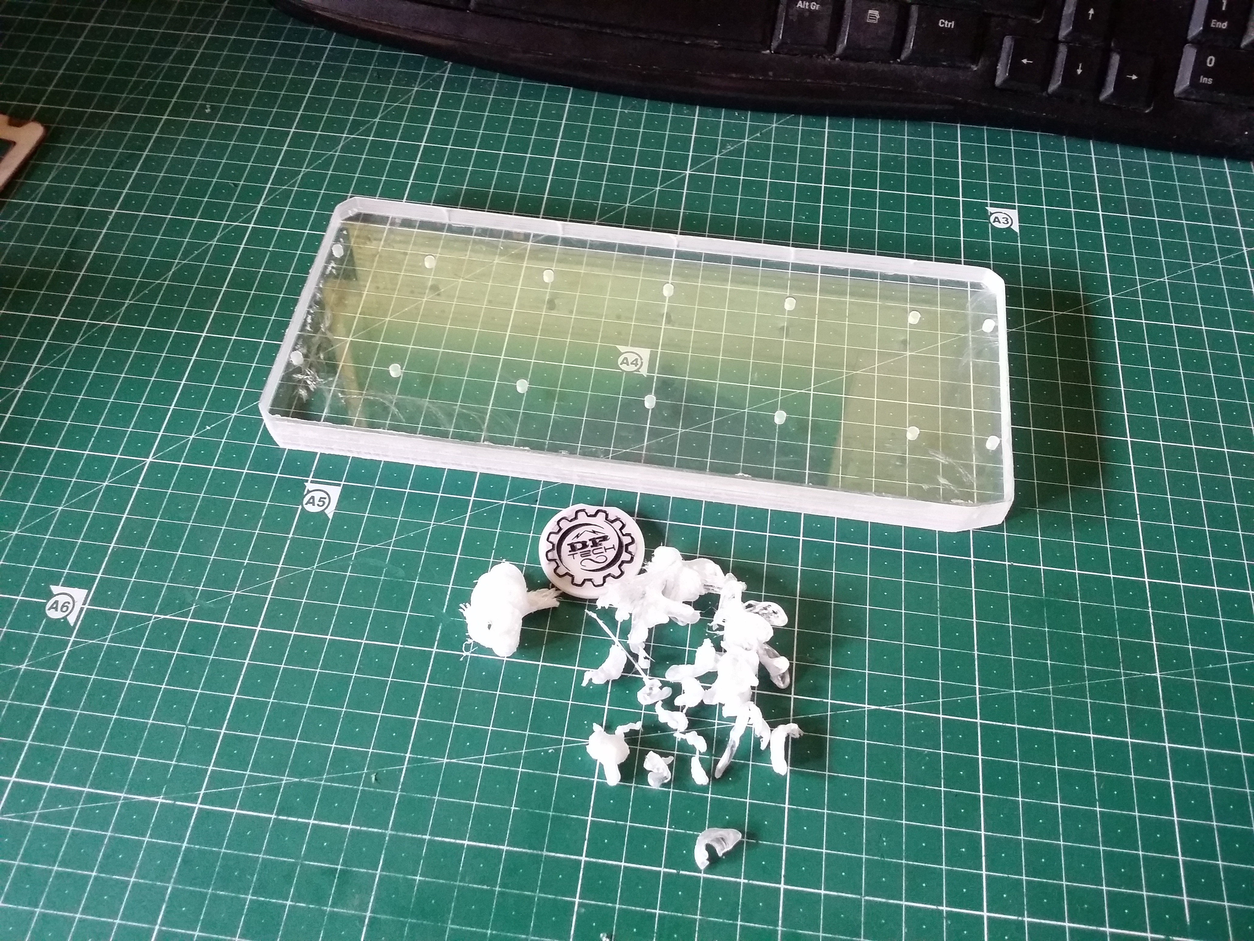 С трудом пополам наметил отверстия и прошелся по контуру. (контур разбили на 7 файлов, что бы чистить фрезу)