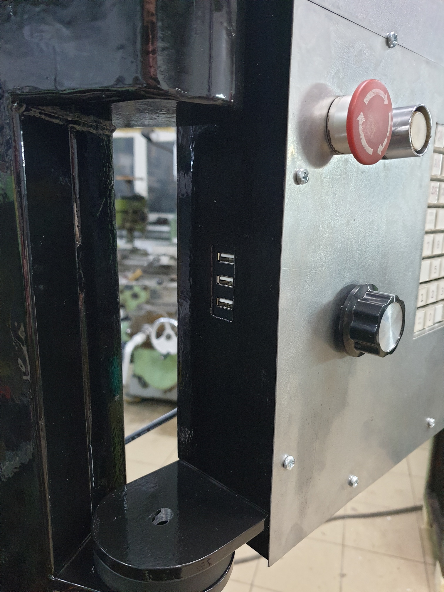 Сделал подвижную основу на корпус станка. Далее сама конструкция стойки. В качестве клавиатуры использовал клаву от кассы:) в последствии когда определюсь с расположением клавиш, хочу отгравировать на алюминии требуемые надписи и сделать накладки клавиш из него.