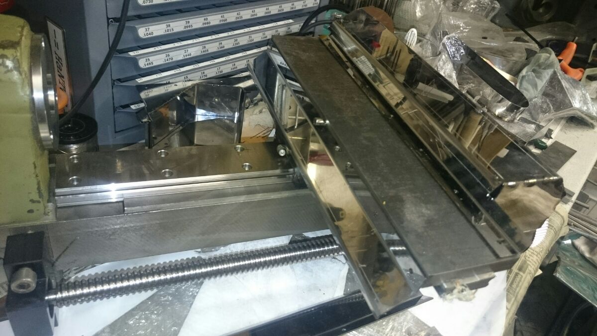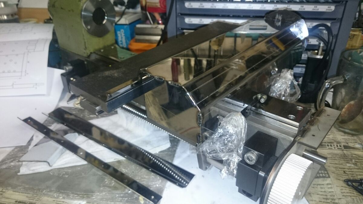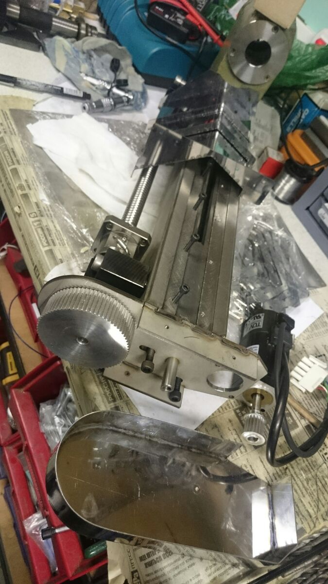 Можно сказать что бОльшая часть работ по токарнику подходит к финалу. Сделаны продольная и поперечные подачи, собраны защиты. Скоро дело дойдет до электроники. Шкивы на шпиндель (HTD-5M) заказали в Китае, стальные, ценник конечно приятный, но поглядим как сделают, целый день переговоров с согласованием чертежей и размеров надеюсь даст результат