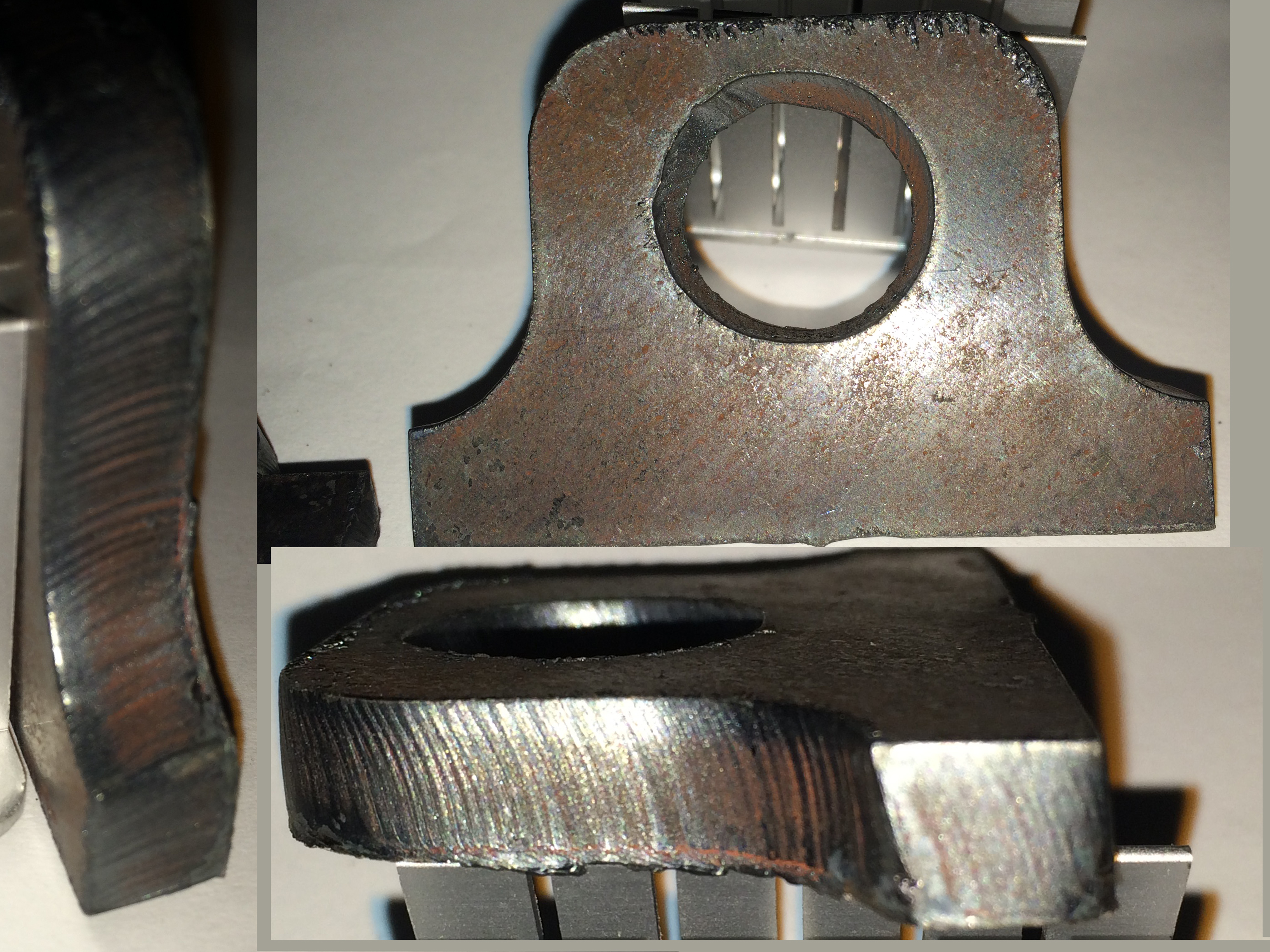 Симптомы: углы заваленны внутрь, отверстия овальные, окалины много.