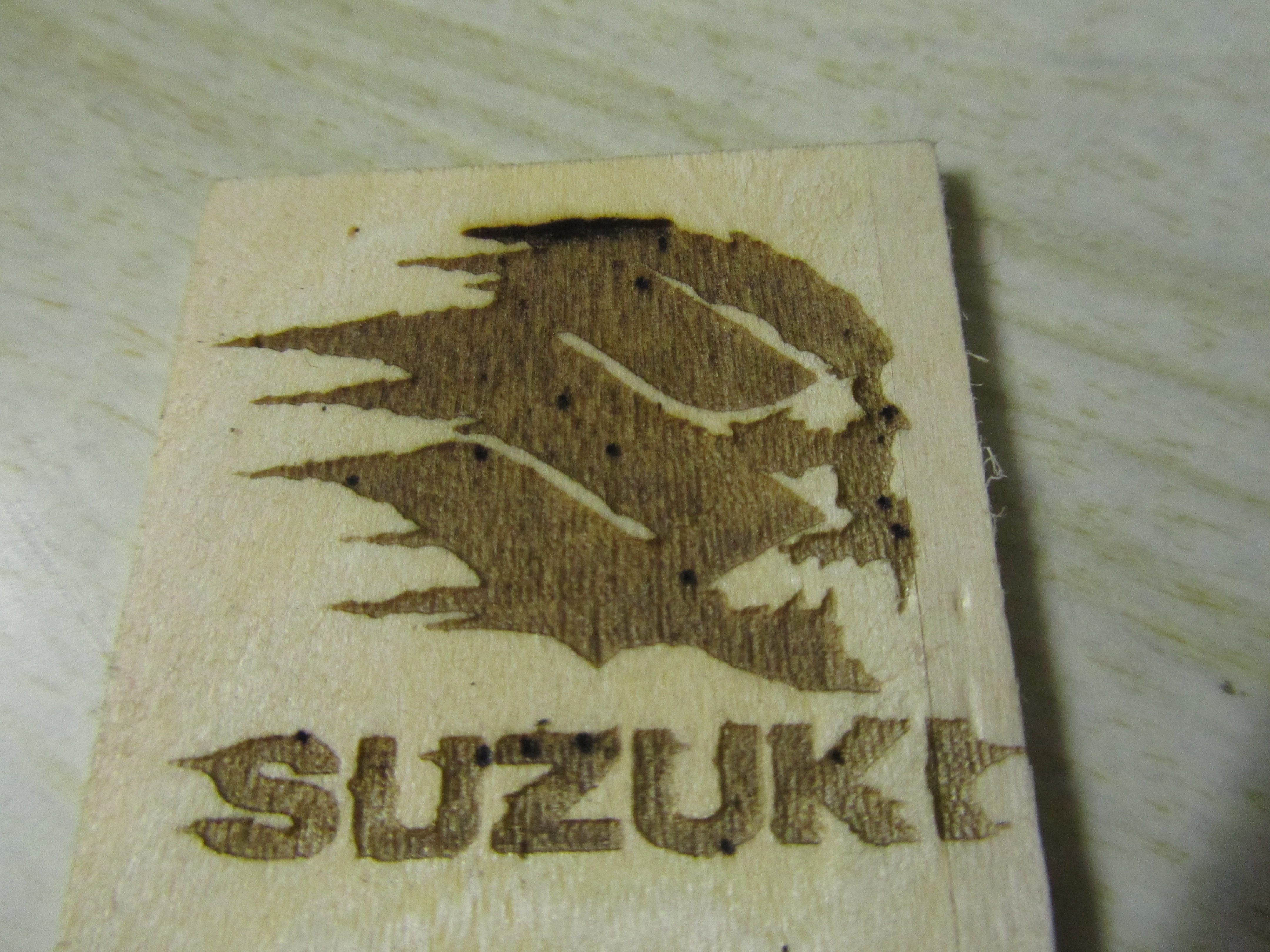 Испытывал на разных материалах,картон,кожа,фанера,пластик. везде одно и тоже. и если пропуски еще как то можно убрать( выставив время на мин, но тогда рисунок со спичечный коробок, делает больше часа) то точечные прожиги сквозные,присутствуют на любых параметрах.Головка лазера в эти моменты, просто зависает на долю секунды а потом идет дальше