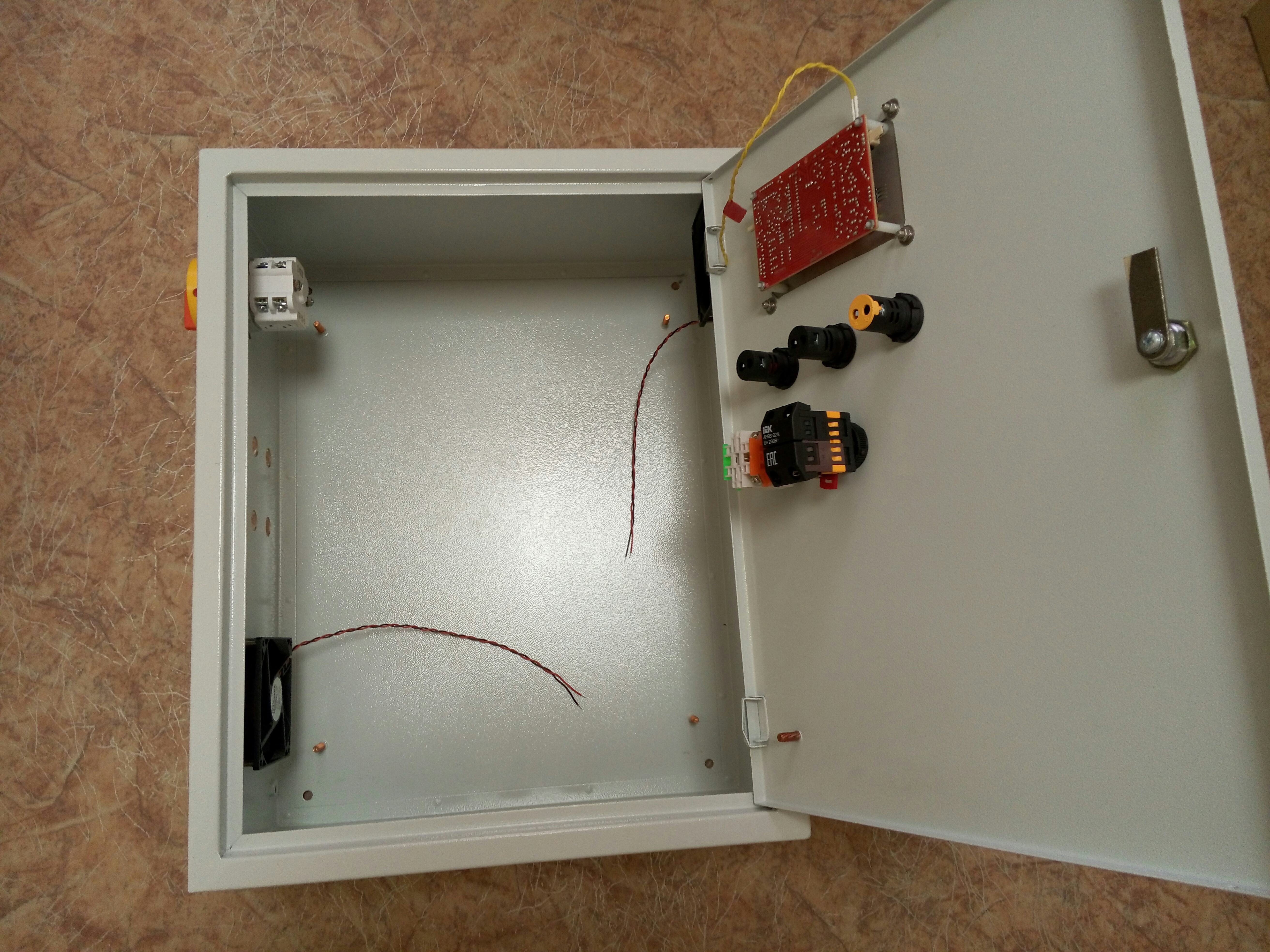 Шкаф ИЕКовский места вроде нормально там, плюс поставил 2 штуки 90мм вентилятора, один закачивает второй выкачивает.