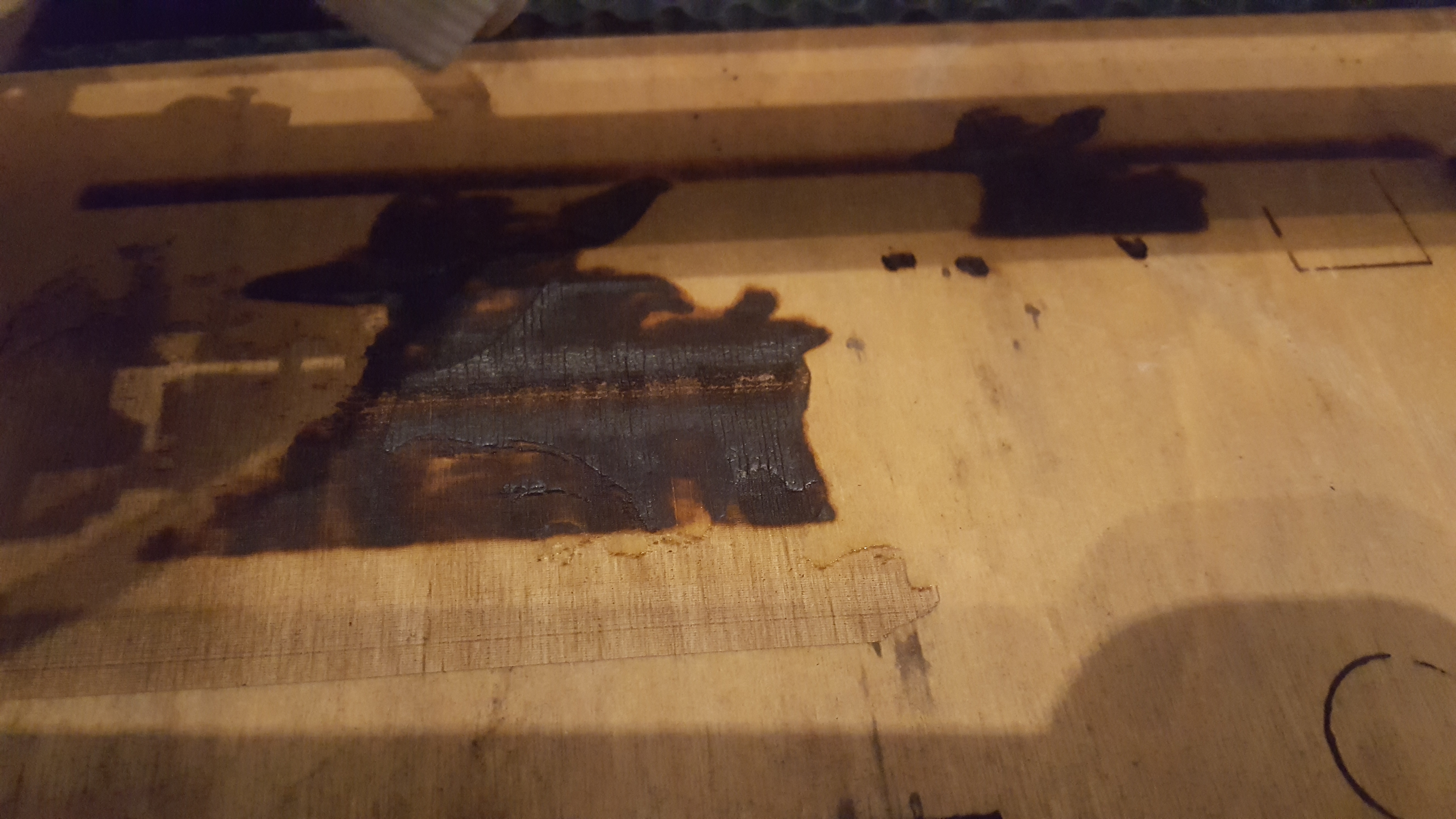 1 вариант: пропитать фанеру содовым раствором и гравировать, получается темнее и при меньшей мощности, но белые места на фанере получаются, как бы назвать цвет...жёлто-грязные.