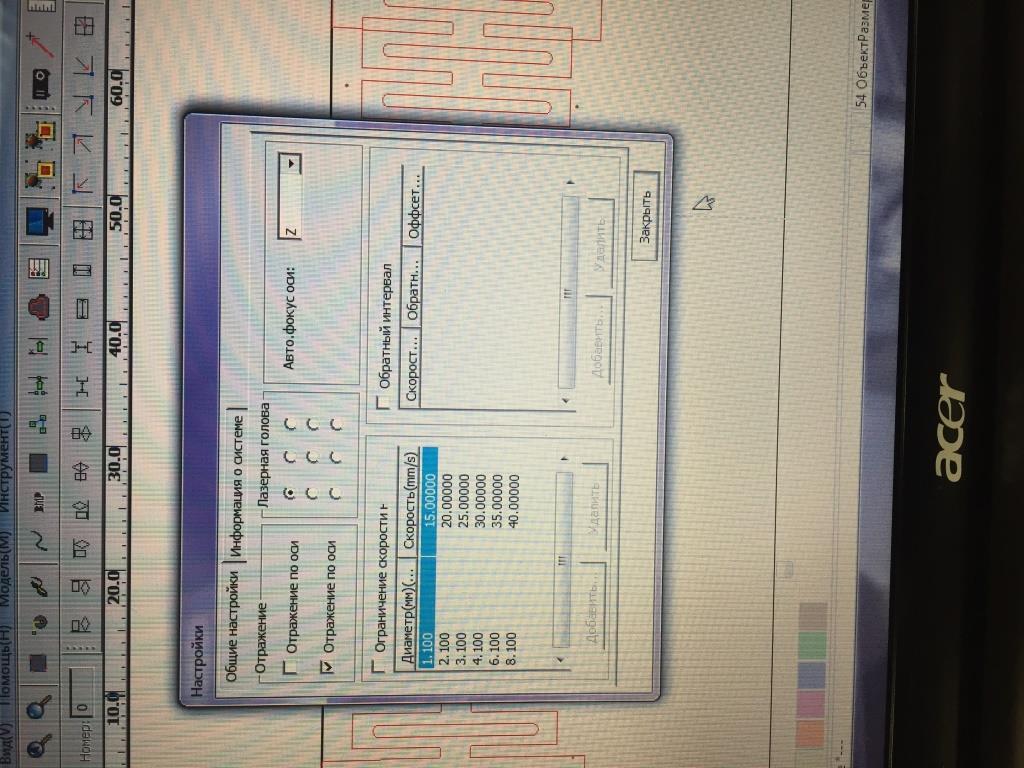 А так - да, дядька Мотор правильный совет дал. Выставить шаги с помощью SW5-SW8 нужно на 1600-2000 (у тебя сейчас аж 6400 стоит). В девелоперских настройках оси Руиде указать длину шага для начала 12 um, в настройке RDWorks указать "Качество PLT" 1000. После этого отловить штатными средствами Руиды размеры, чтобы по Х и У были нормальными и потестировать снова.