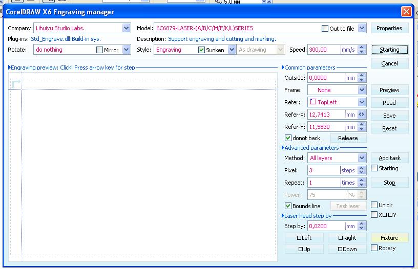 Все равно не хочет гравировать. Как только вывожу гравировку, он резво начинает, но через 20 сек начинает несколько раз выбрасывать окна , а потом зависает насмерть. Причем не тольько текст, а рисунки тоже зависают.
