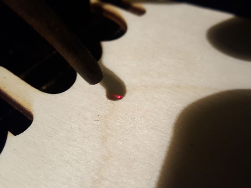 Откопал лазерный нивелир и проверил на практике схему. Работает отлично, если соблюдать соосность, то линза с радостью собирает линию в точку