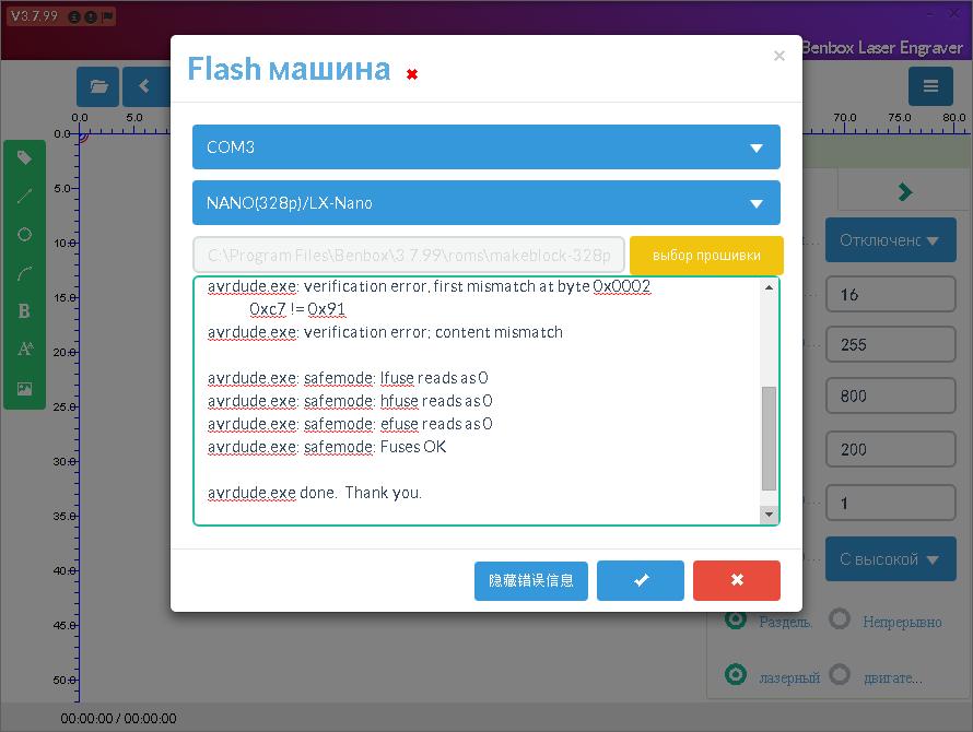 добрый вечер, подскажите. пробывал залить deit упомянутую прошивку,чтоб с тенями печатать. станок вообще умер.вот что пишет при прошивкеtest3210 писал(а):прошивки лежат в папке D:\Program Files\Benbox\3.7.99\roms\
