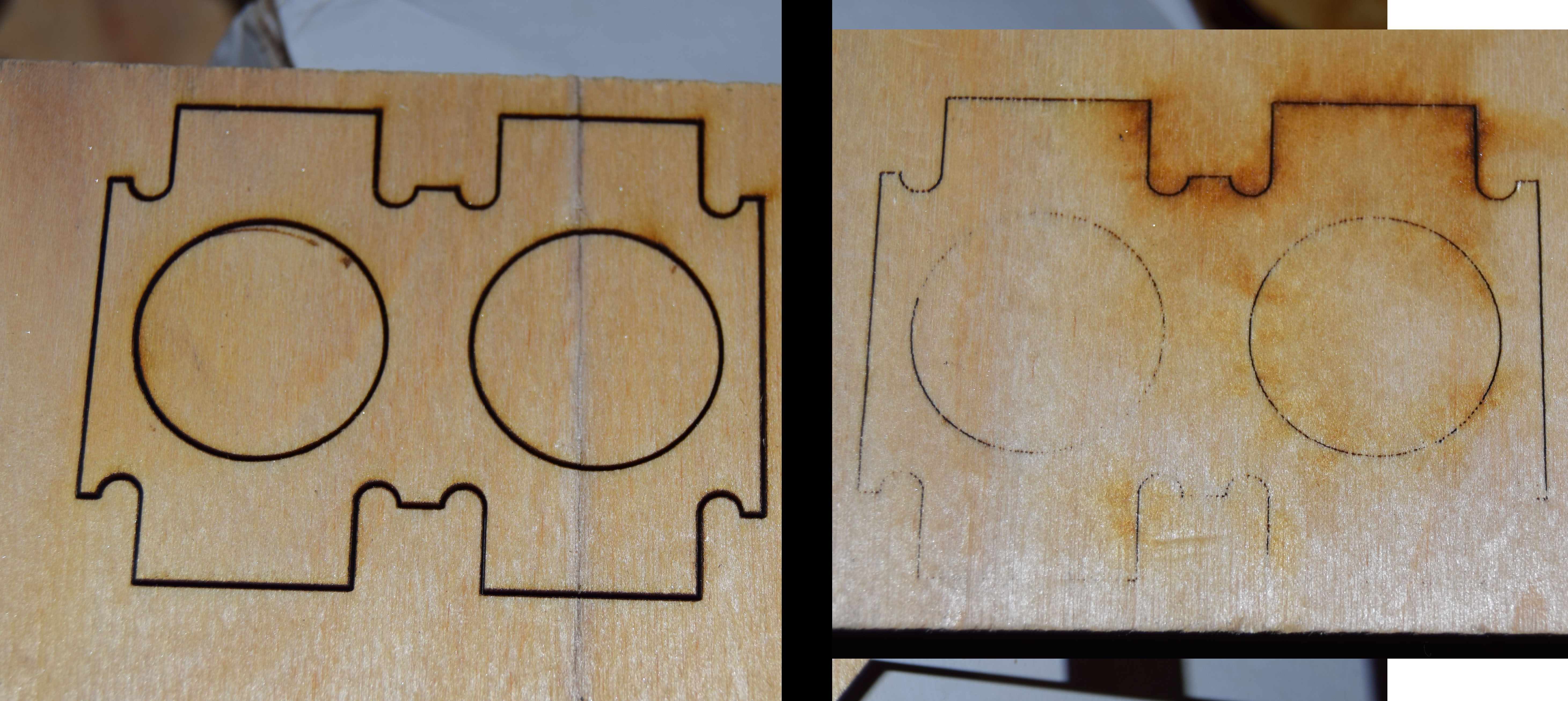 вот так мой станок режет 4 мм фанеру на скорости 5 мм/с (небольшой недорез - сучок на внутренних слоях)