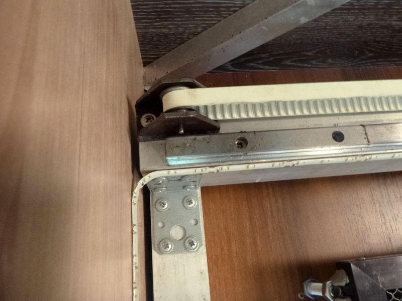 Станина собрана из алюм трубы 40х60. Соединения саморезами большими и еще сверху уголками.