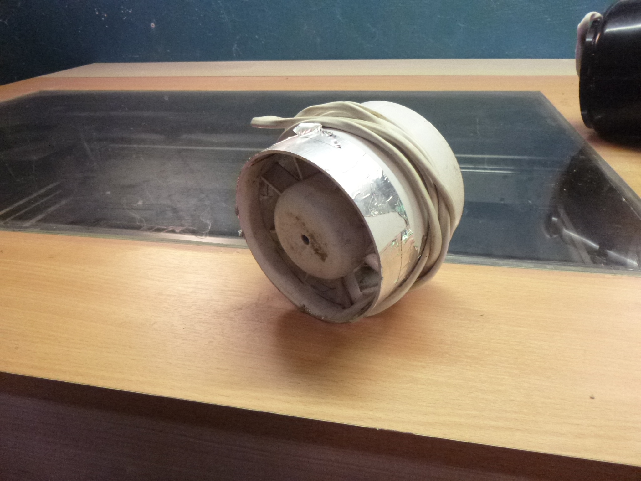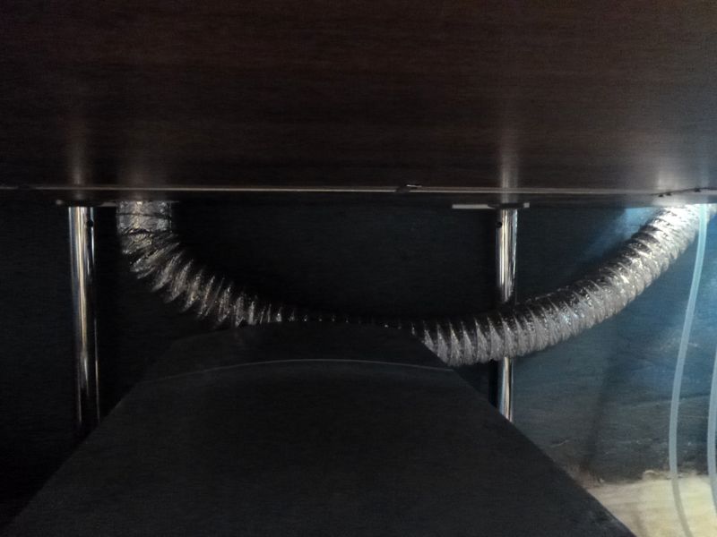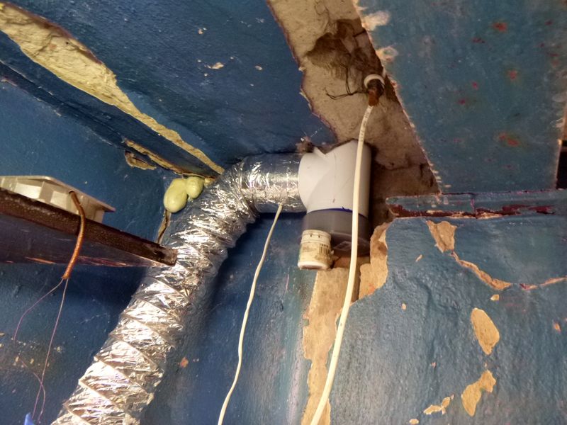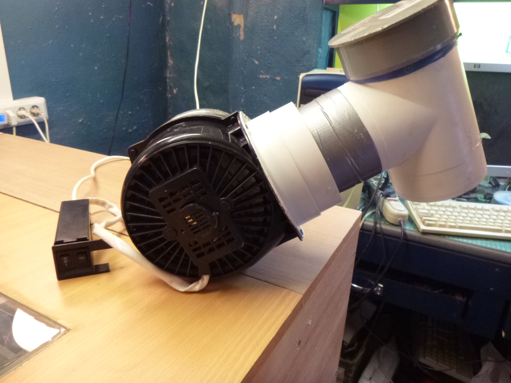 идет прямо к трубе. Прочитал, что надо ставить именно в это место. Теперь, если у воздуховода будет повреждение, то низкое давление в нем не даст попасть в помещение газообразных продуктов резки.
