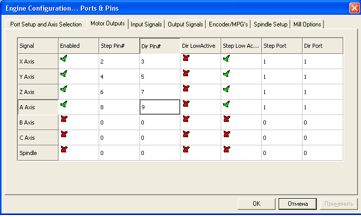 Уточнение. У меня выставлен микрошаг привода - 4 поэтому хочу узнать какой параметр в конфигурации отвечает за его настройку (допустим микрошаг привода должен быть 8) И второй момент. стоит параметр "Инвертировать" в настройках паралельного порта. И так же хочется узнать какие параметры в конфигурации за него овечают.
