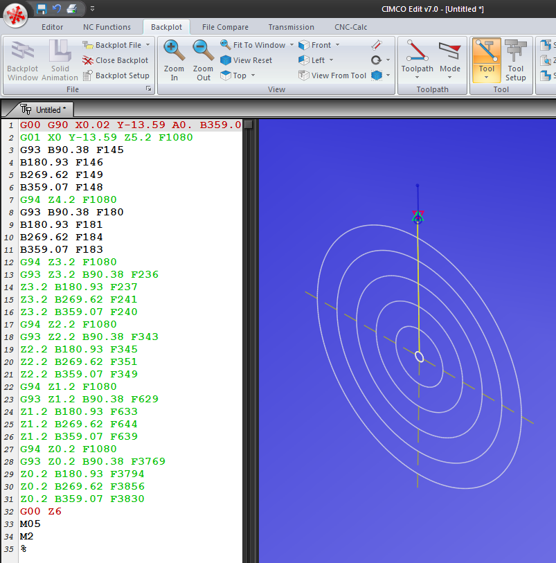 Видим появление команд G93 и G94. Теперь со скоростями нет проблем, постпроцессор сам всё грамотно рассчитывает