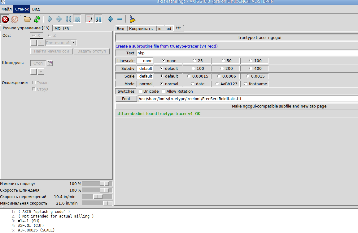 Обсуждение установки, настройки и использования LinuxCNC. Вопросы по Gкоду.
