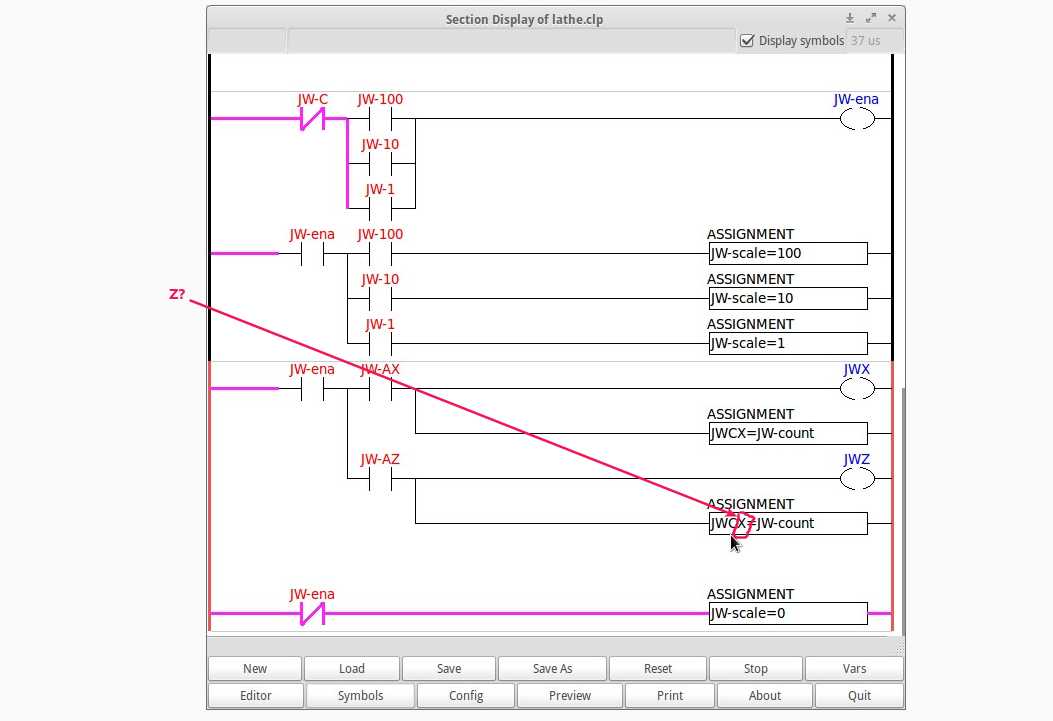 net jog-whell-scale axis.1.jog-scale <= axis.0.jog-scale <= classicladder.0.floatout-00 # (JWS) выход масштаба энкодера