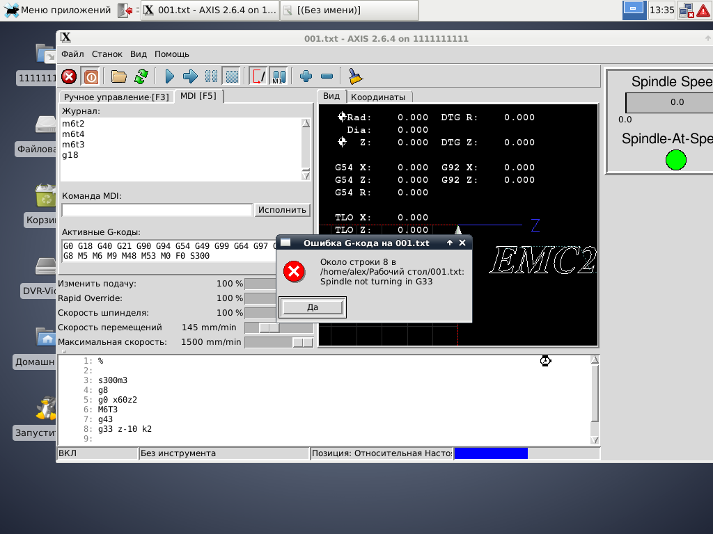 emc недоступна и не реагирует на меня пока недорежет и цикл резьбы не реагирует на ползунки скорости на экране