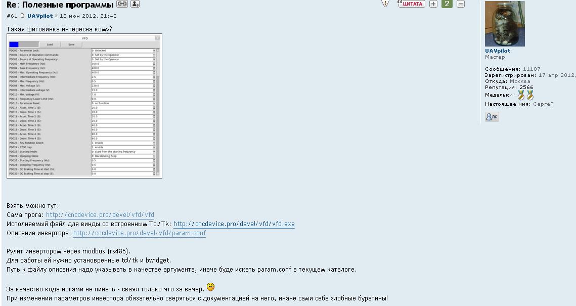 Все мои наработки выложены в комплекте с программой. param.conf я делал только для своего частотника (вроде он должен подойти и для HY02D223B).