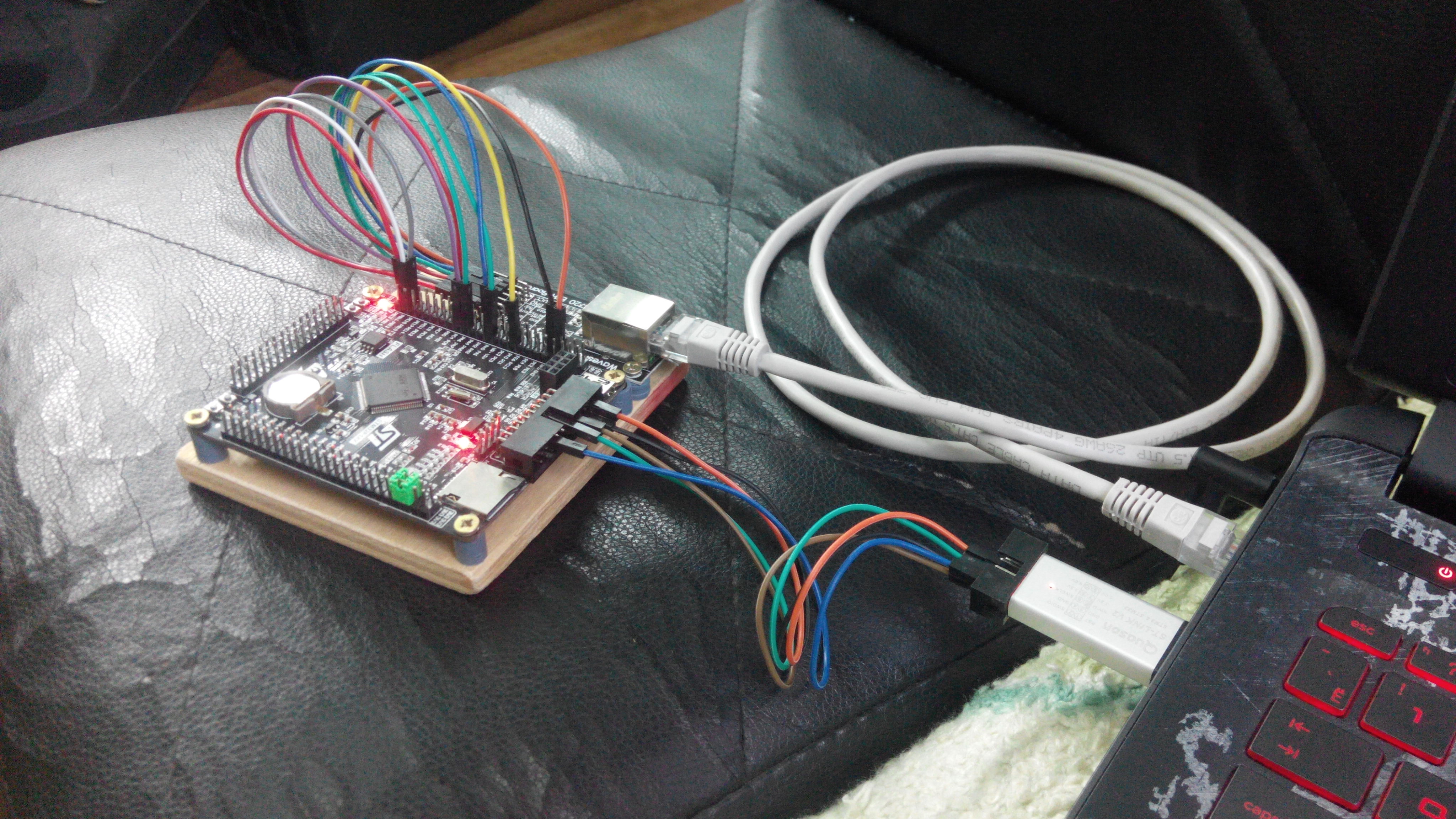 Собрал небольшую макетку из двух модулей. Удивительно, что с первого раза удалось всё правильно подключить и настроить сеть. Надо отдать должное команде разработчиков CubeMX. Сделаю пару тестов на скорость передачи/обработки. И можно приступать к работе над прошивкой.
