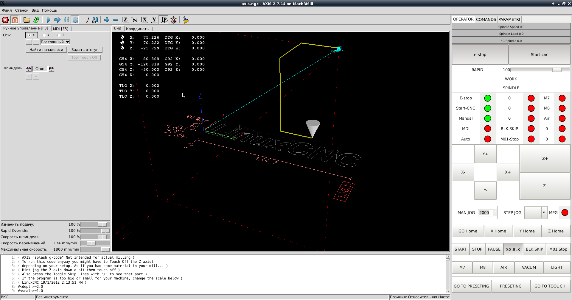 Я начал переход с МАЧ-3 на линукс, и для нужд станка создал кастомную панель в glade.