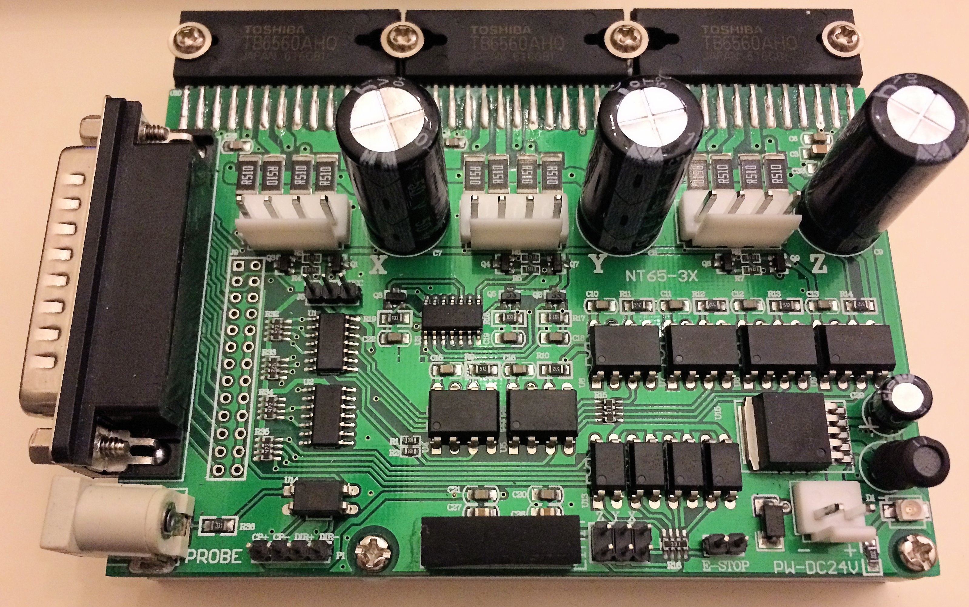 Вы привели фото очень похожее на мою плату, управляющую первыми тремя осями. Единственно, разъем питания (на плате слева от разъема DB-25) не выведен на заднюю панель корпуса станции, а к нему подпаяны провода от фильтра питания.